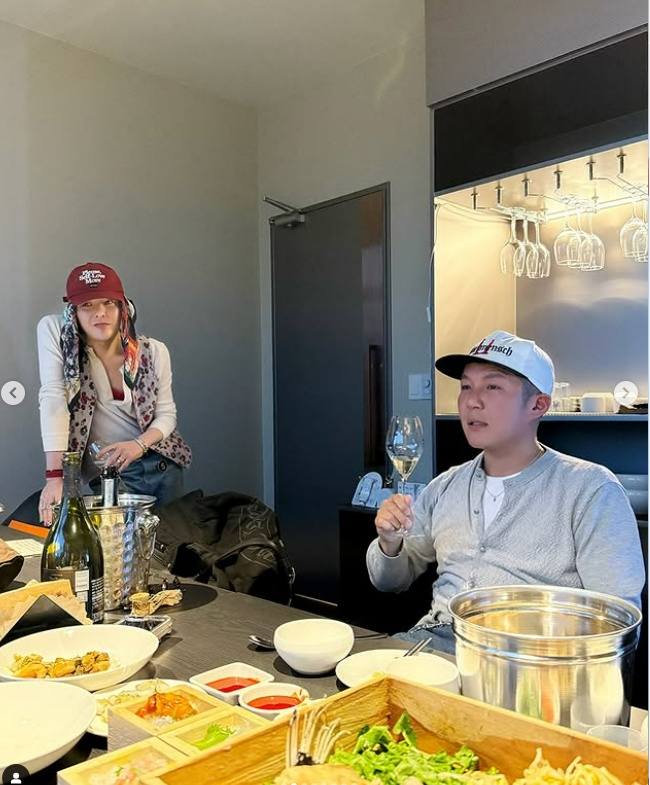 사진 속 지드래곤은 코미디언 조세호와 술자리를 갖는 모습이었다.
