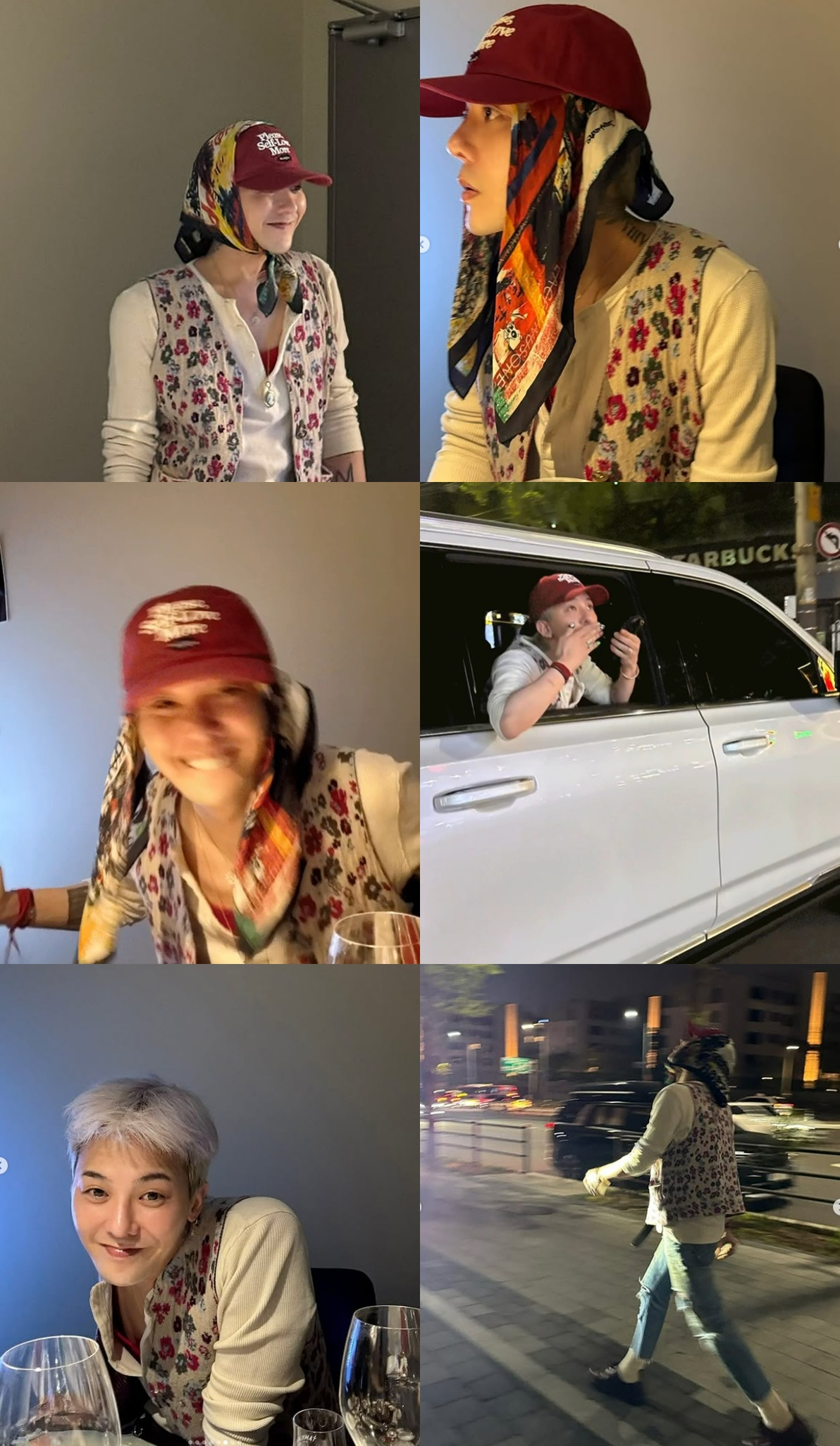 그는 특히 슬림핏 티셔츠에 꽃무늬 조끼, 모자와 스카프를 착용하고 남다른 패션센스를 발휘했다.