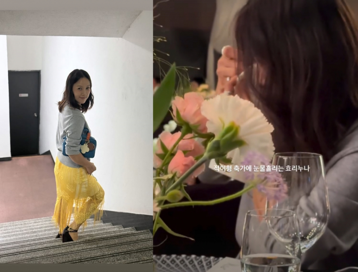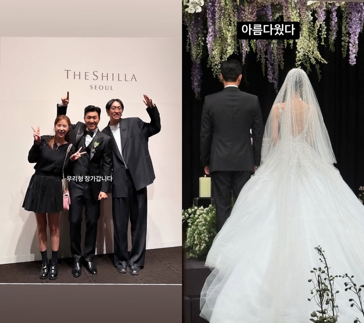 또한 이효리는 자신의 인스타그램에 "아름다웠다"라는 글과 함께 버진로드를 걷는 김종민과 신부의 뒷모습을 공개했다. 이어 옆자리에 앉은 유재석의 모습은 물론, 노란 치마로 포인트를 준 하객룩을 공개하며 친분을 인증했다.
