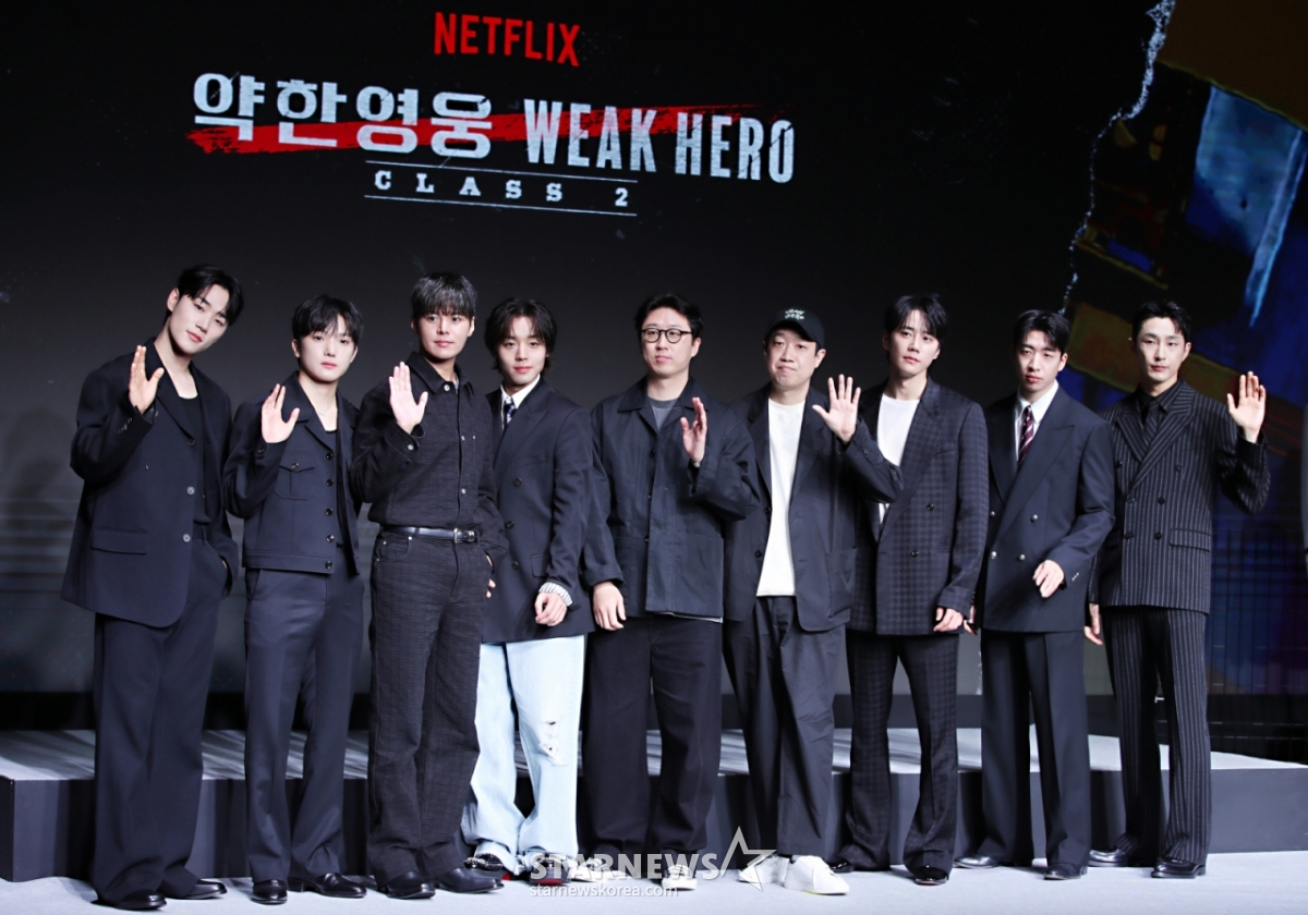 21일 서울시 마포구에서 넷플릭스 시리즈 '약한영웅 Class 2'의 제작발표회가 개최됐다. 이 자리에는 한준희 기획총괄, 유수민 감독을 비롯해 배우 박지훈, 려운, 최민영, 유수빈, 배나라, 이민재, 이준영이 참석해 다양한 이야기를 나눴다.
