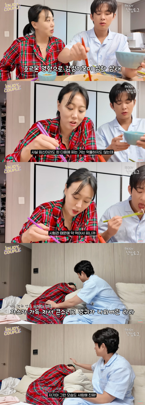 임라라는 "가스가 차서 너무 힘들다. 방귀 소리가 너무 커서 놀랐다"고 하소연했다.