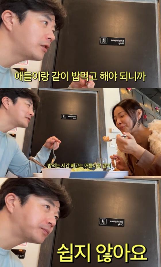 손태영은 "저녁은 프로틴 음료 같은 거 한 잔 마신다. 그래도 주말에는 먹는다"고 말했다. 이에 권상우는 "애들이랑 같이 밥 먹고 해야 한다. 밥 먹는 시간 빼고는 애들이랑 같이 넷이서 있기가 쉽지 않다. 애들도 커서 자기 방에 들어가 있고 한다"고 말했다.
