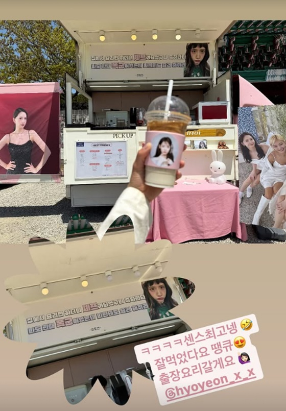 윤아는 26일 자신의 인스타그램에 효연이 보낸 커피차를 찍어 인증했다.