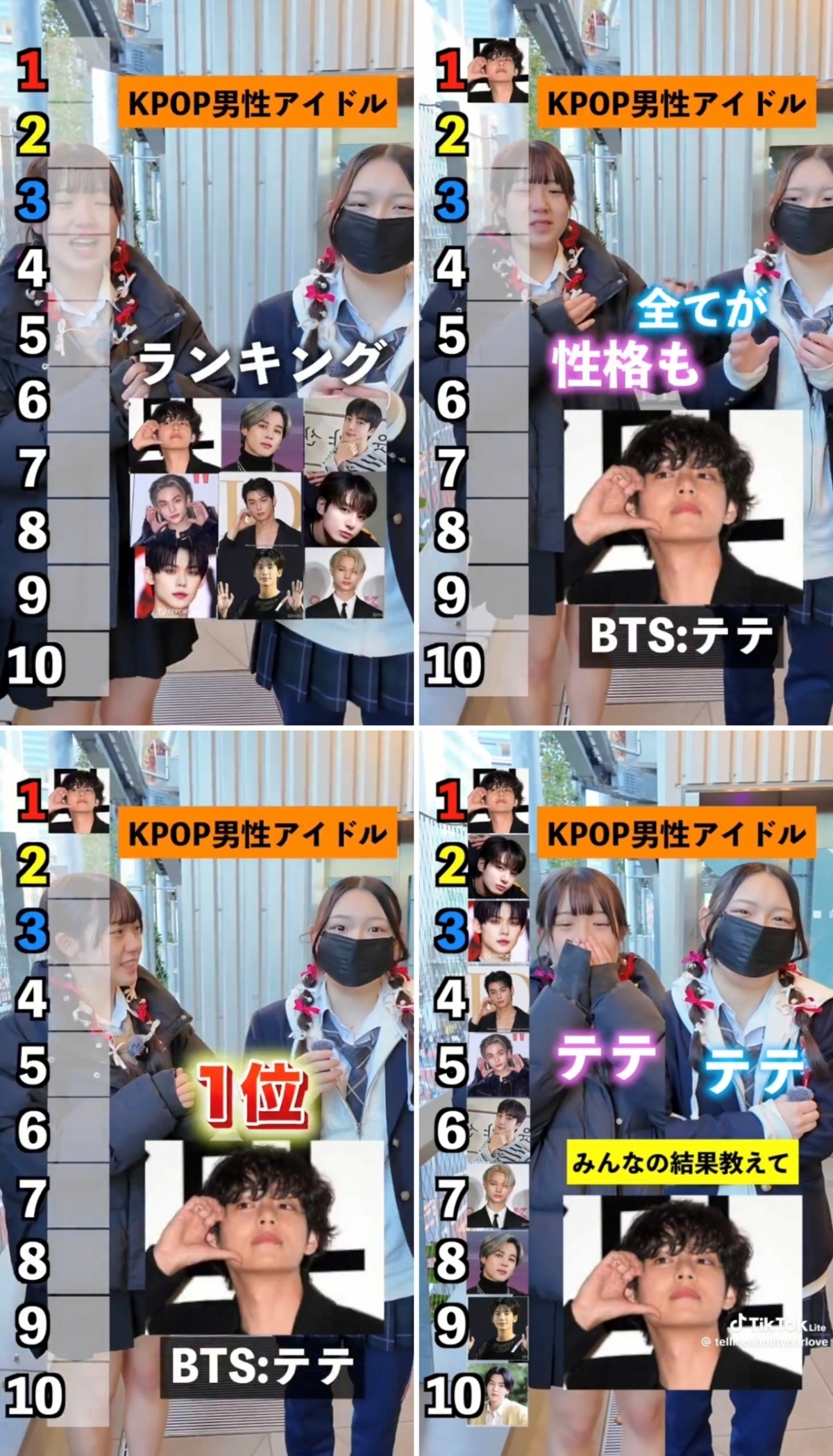 최근 일본의 유명 틱톡커가 거리 인터뷰를 통해 일본에서 가장 인기 있는 K팝 남자 아이돌의 순위를 정한 흥미로운 영상을 게재했다. 뷔는 얼굴, 목소리, 퍼포먼스, 성격 등 모든 것이 완벽한 1위라는 평가를 받으며 가장 인기 있는 K팝 남자 아이돌에 올라 대중적인 인지도와 인기를 입증했다.