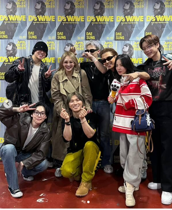 사진 속 여덞 사람은 대성 공연장 백스테이지에서 화기애애한 분위기를 자아내고 있는 모습. 앞서 대성은 지난 26일, 27일 양일간 서울 올림픽공원 올림픽홀에서 2025년 아시아 투어 서울 공연을 성공적으로 마쳤다.