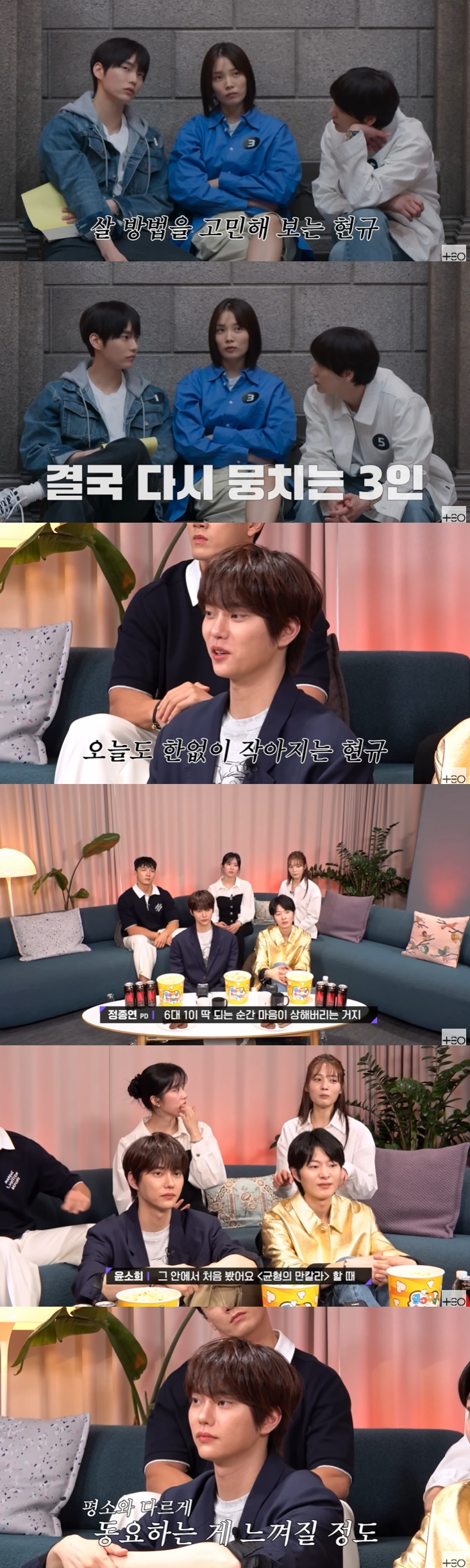 이에 윤소희는 "저도 얘(정현규)가 감정적으로 힘들어 하는 걸 그 안에서 처음 봤다"며 "너무너무 슬퍼하는 거다. 혼자 남은 거에"라고 말했다. 손은유도 "'균형의 만칼라' 할 때 현규가 멘트를 쳐도 동요가 느껴졌다"고 했다.