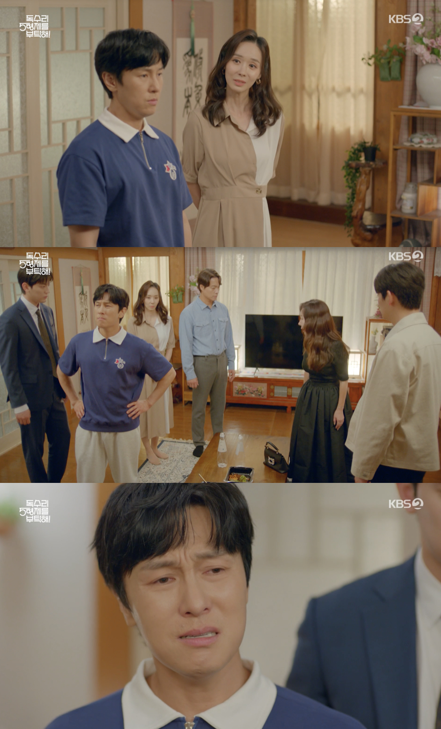 1일 방송된 KBS2 주말드라마 '독수리 5형제를 부탁해!'에서는 한동석(안재욱 분)이 마광숙(엄지원 분)에게 어머니 공주실(박준금 분)에게 연애 사실을 먼저 알리자고 제안하는 장면이 그려졌다.