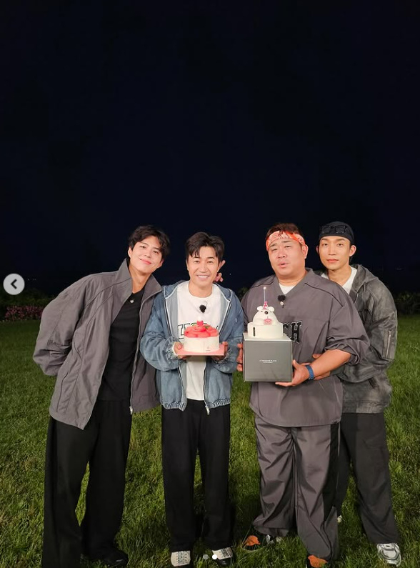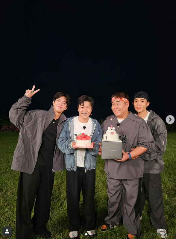 지난 1일 문세윤은 개인 SNS에 "박보검, 이상이한테 케이크 받는 남자. 역시 #굿보이"라며 박보검, 이상이, 김종민과 함께 찍은 셀카 두 장을 게재했다.