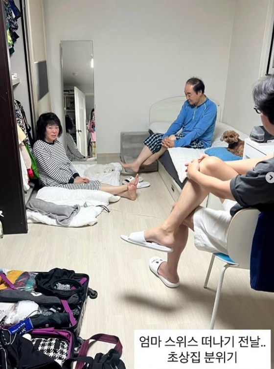 5일 미자는 개인 계정에 "마포 친정집 초상집 분위기. 엄마는 오래전부터 꿈꿔온 스위스 여행을 떠났다. 아버지 참 밝은 분인데 이렇게 하늘이 무너지는 표정은 처음 봤다"는 글과 사진을 게재했다.