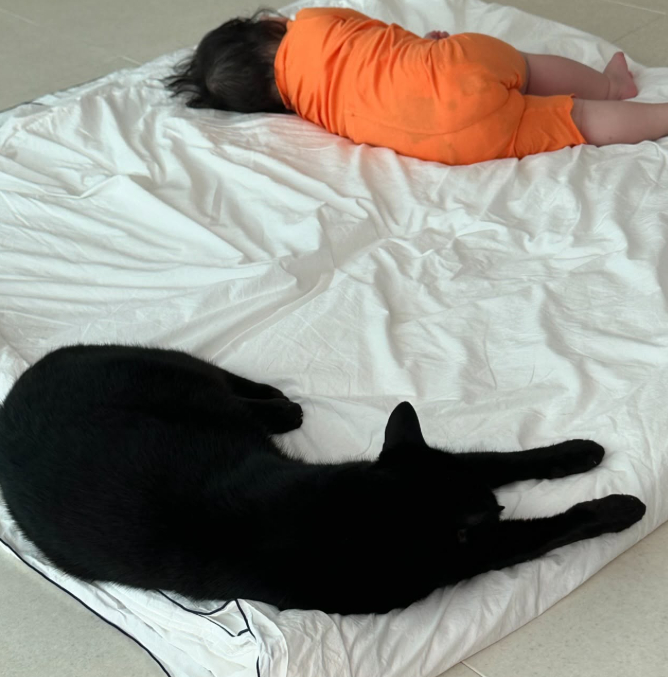 박수홍은 1일 반려묘 다홍이 SNS 채널을 통해 다홍이와 함께 낮잠을 자고 있는 재이의 모습을 공개했다.