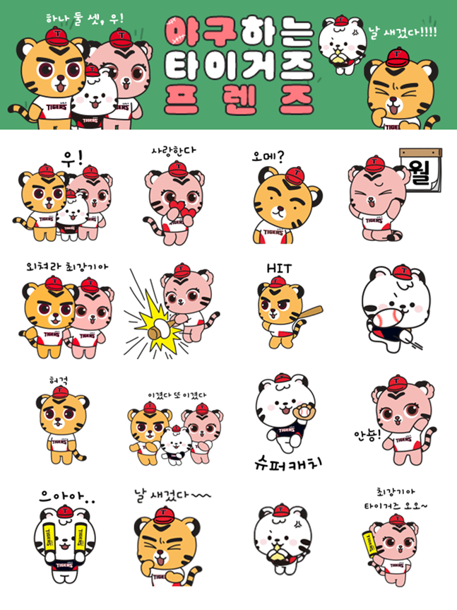 이번에 신규 출시하는 움직이는 이모티콘 24종은 '야구하는 타이거즈 프렌즈'라는 주제로 마스코트 3종(호걸이, 호연이, 하랑이)이 KIA 경기를 관람하며 응원하는 모습을 주로 표현했다. 특히 팀 홈런 세리머니, 팀 응원가, 견제 구호 등을 이모티콘화 해 팬들이 카카오톡 메신저에서 대화를 주고받는 동안에도 야구를 하나의 콘텐츠로 즐길 수 있게 했다.