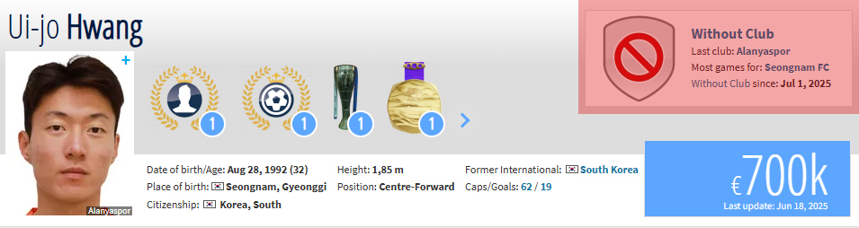 지난해에도 새로운 팀을 찾지 못해 선수 커리어 위기를 맞았다. 노팅엄과 방출된 뒤 무적 신세가 이어지다 가까스로 임대 인연이 있었던 알라니아스포르와 1년 단기 계약을 체결했다. 당시 계약 시점마저도 유럽 대부분의 리그 개막일을 훌쩍 넘긴 9월이었다. 올해 역시도 비슷한 상황과 마주할 가능성을 배제할 수 없다.