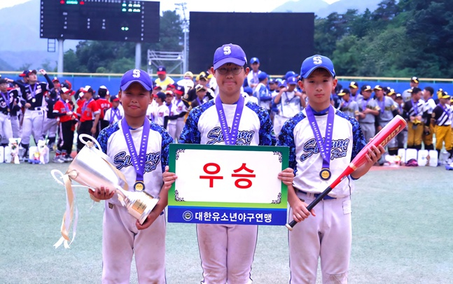 우승을 차지한 경기 시흥시유소년야구단 선수들. /사진=대한유소년야구연맹