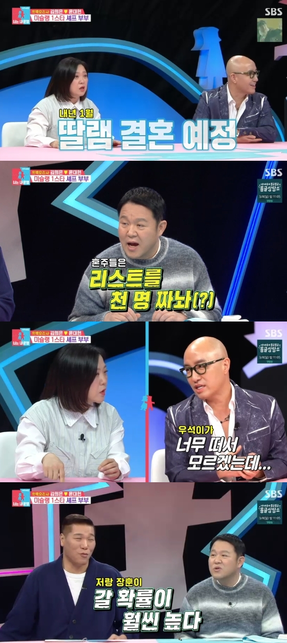 Sau đó, Kim Gura tiếp tục nói: "Vốn dĩ những người độc thân phải lên danh sách hàng ngàn người". Hong Seok Cheon đã mang đến tiếng cười khi phản bác: "Tôi có thể làm được danh sách hay không?".