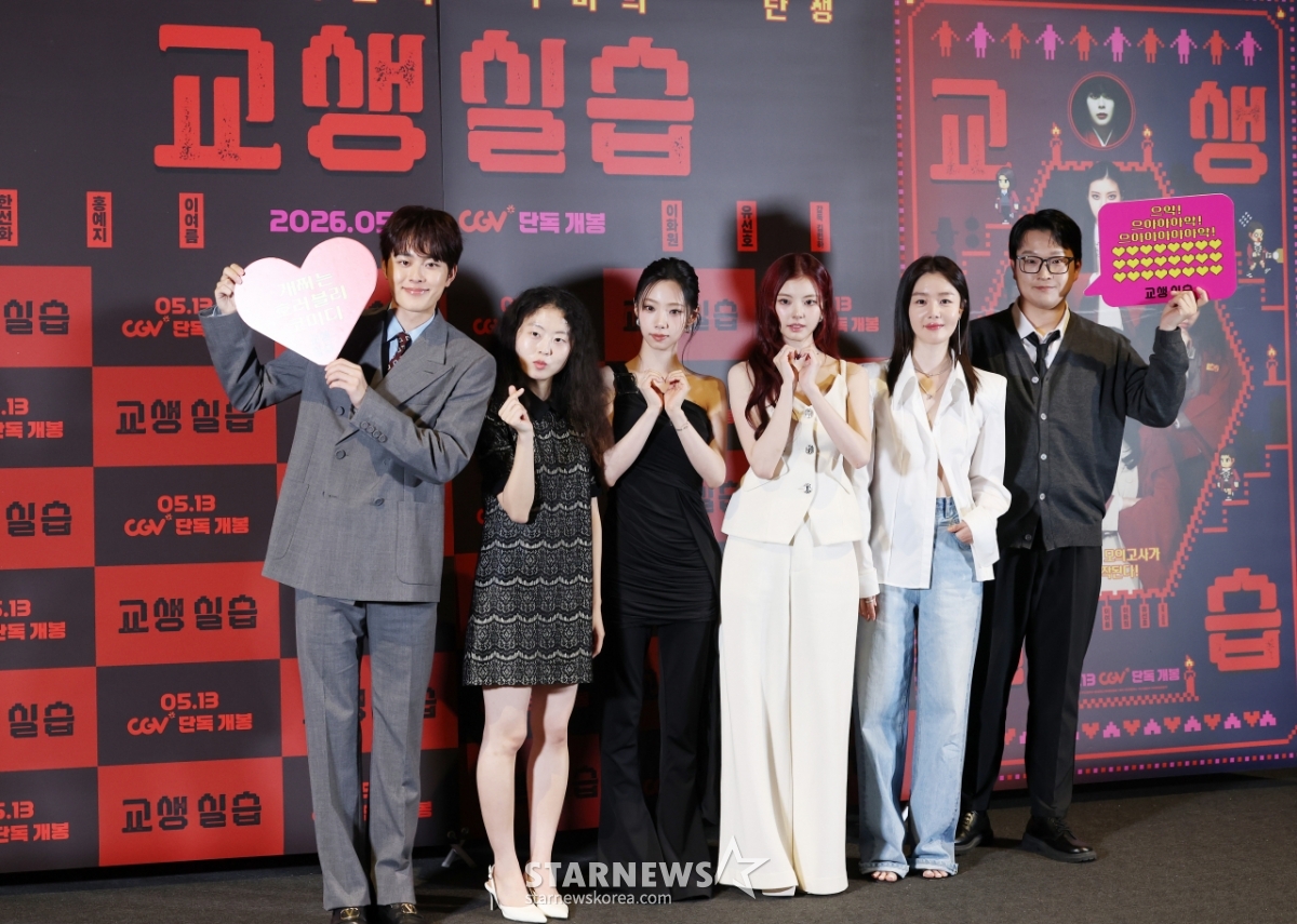 Ngày 29/3, diễn viên Yoo Seon Ho, Lee Hwa Won, Lee Yeoreum, Hong Ye Ji, Han Sun Hwa, Kim Min Ah đang tạo dáng tại buổi họp báo và họp báo cho bộ phim điện ảnh Thực hành Giáo viên diễn ra tại CGV IPark Mall, Yongsan-gu, Seoul. /2026.04.29