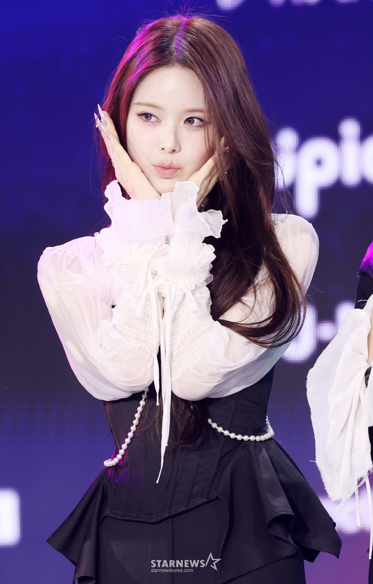 Ngày 11/4, nhóm nhạc IZuna Park Ji Min đang tạo dáng tại Photo Wall thảm đỏ The Awards lần thứ 2 diễn ra tại Nhà thi đấu Hwajeong, Đại học Korea, Seongbuk-gu, Seoul. /2026.02.11