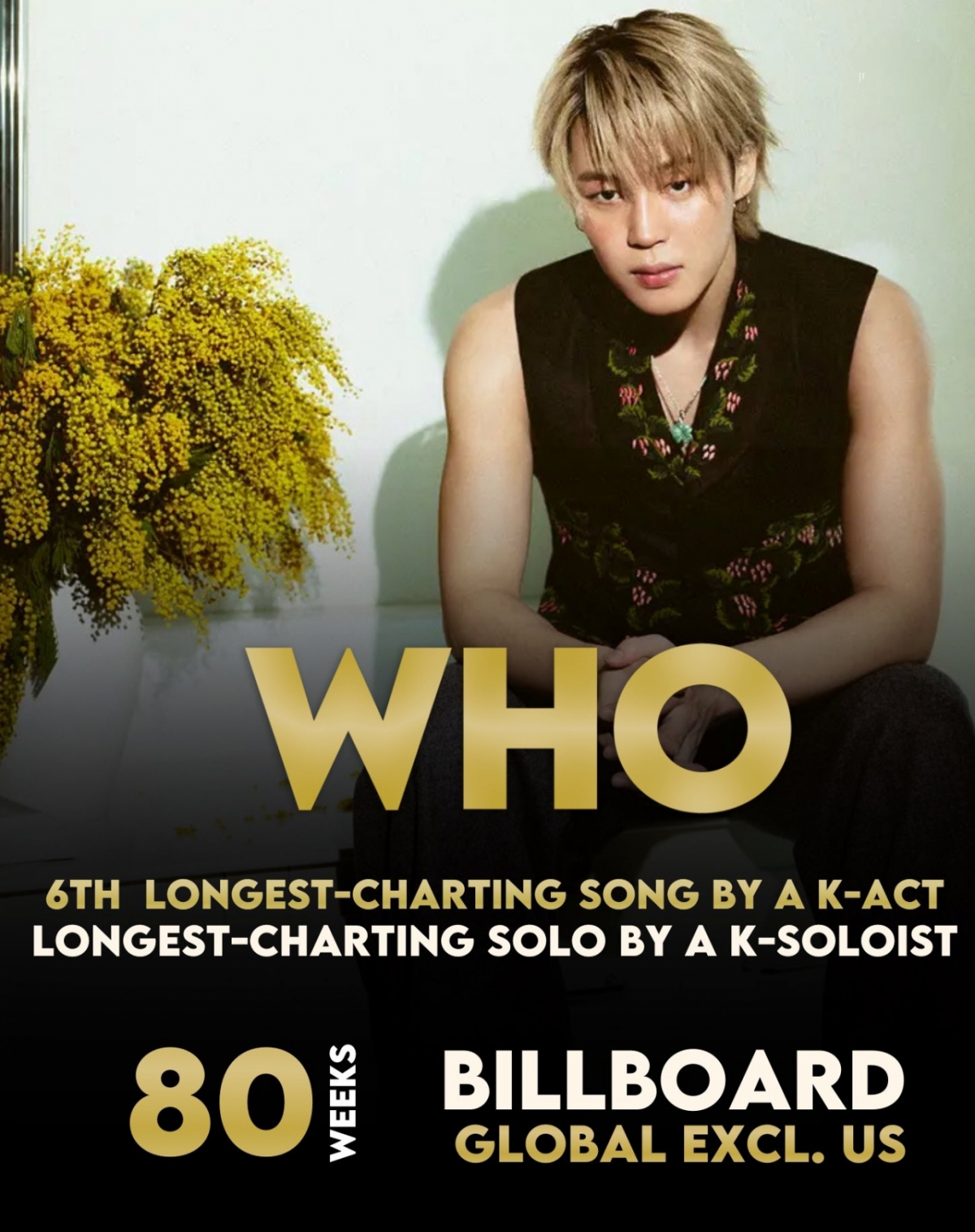 Theo Billboard, ca khúc chủ đề Who nằm trong album solo vol.2 Muse của Jimin mang tên Global Exclude của Billboard. US)Nó đã lọt vào bảng xếp hạng 80 tuần.