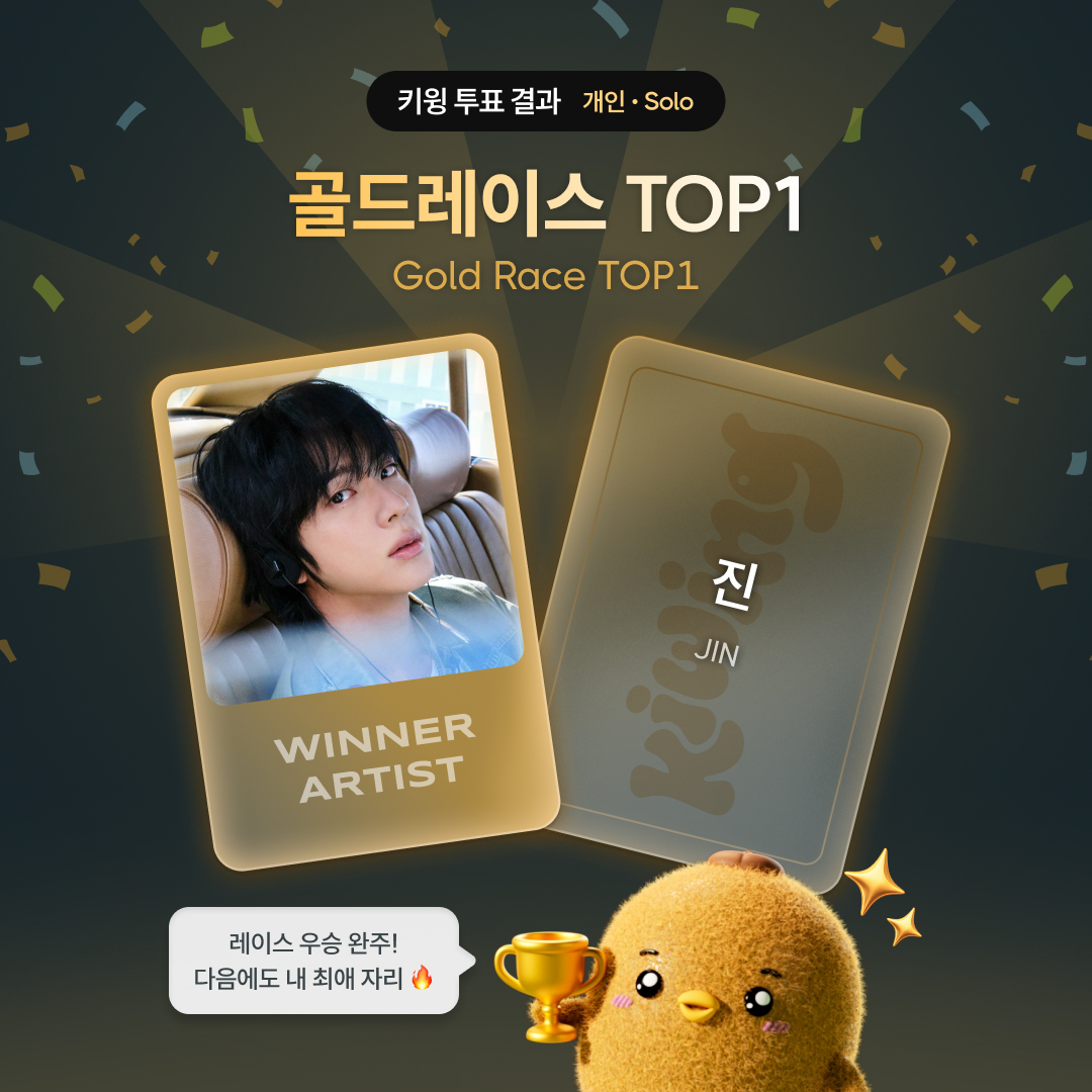 Jin một lần nữa khẳng định sự ủng hộ của người hâm mộ khi giành được vị trí số 1 trên nền tảng fandom kiểu nhân vật Kiwing.