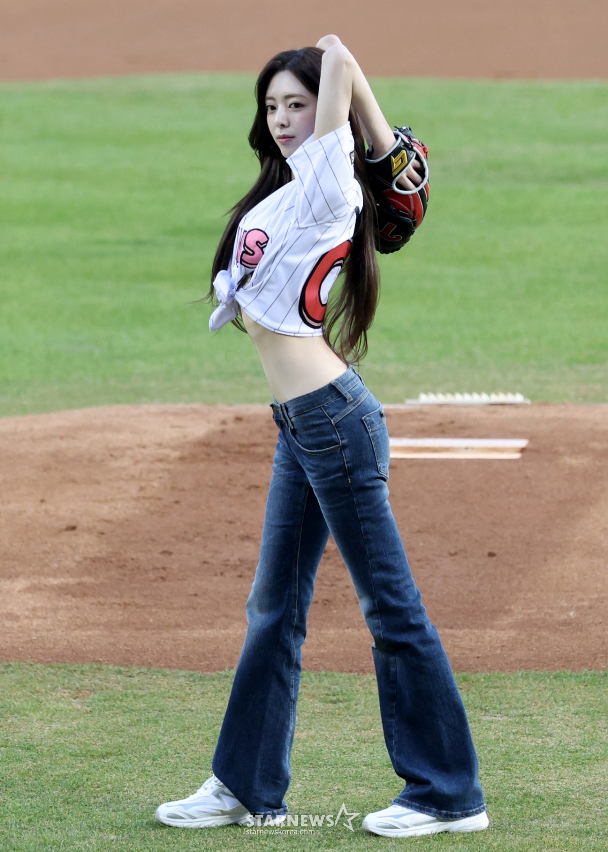 Yuna (ITZY) đang ném bóng mở màn cho lời cầu nguyện chiến thắng của LG.