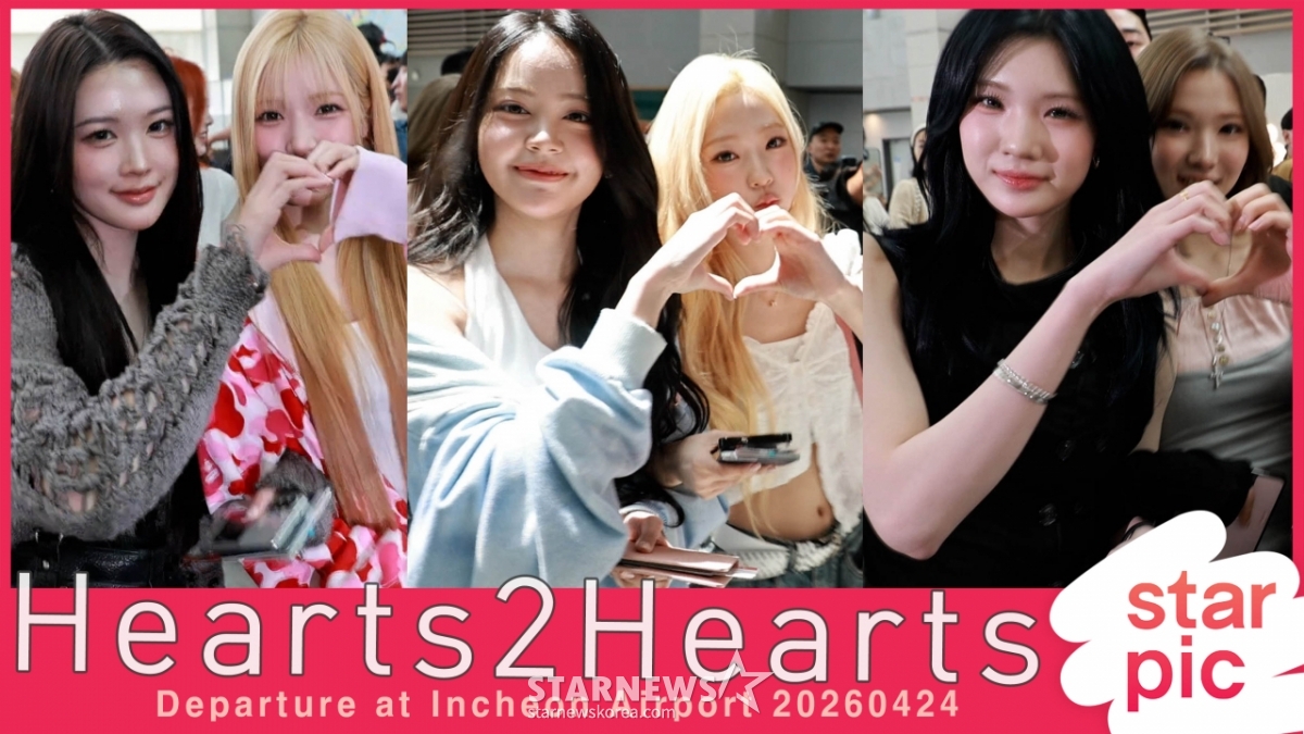 Nhóm nhạc Hearts2Hearts Carmen, Yoo Ha, Stella, Ye On, Eina, Jiwoo, Jooeun, Ian đang trên đường khởi hành từ sân bay quốc tế Incheon vào chiều 25/4. 2026.04.24