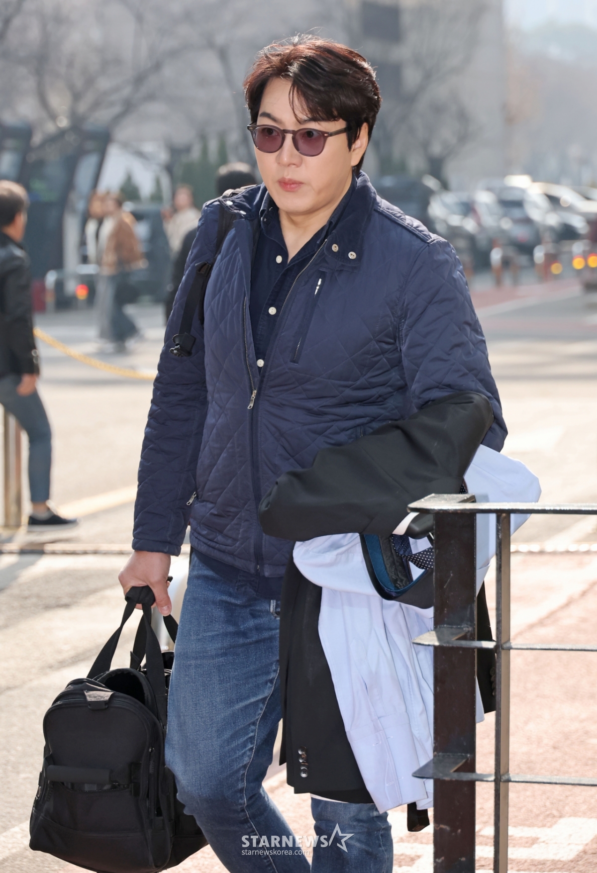 Sáng 16/5, nam diễn viên Song Il Kook đang bước vào sảnh công khai để tham dự buổi diễn tập máy ảnh Immortal Song được tổ chức tại tòa nhà KBS ở Yeouido, Seoul. /2026.03.16