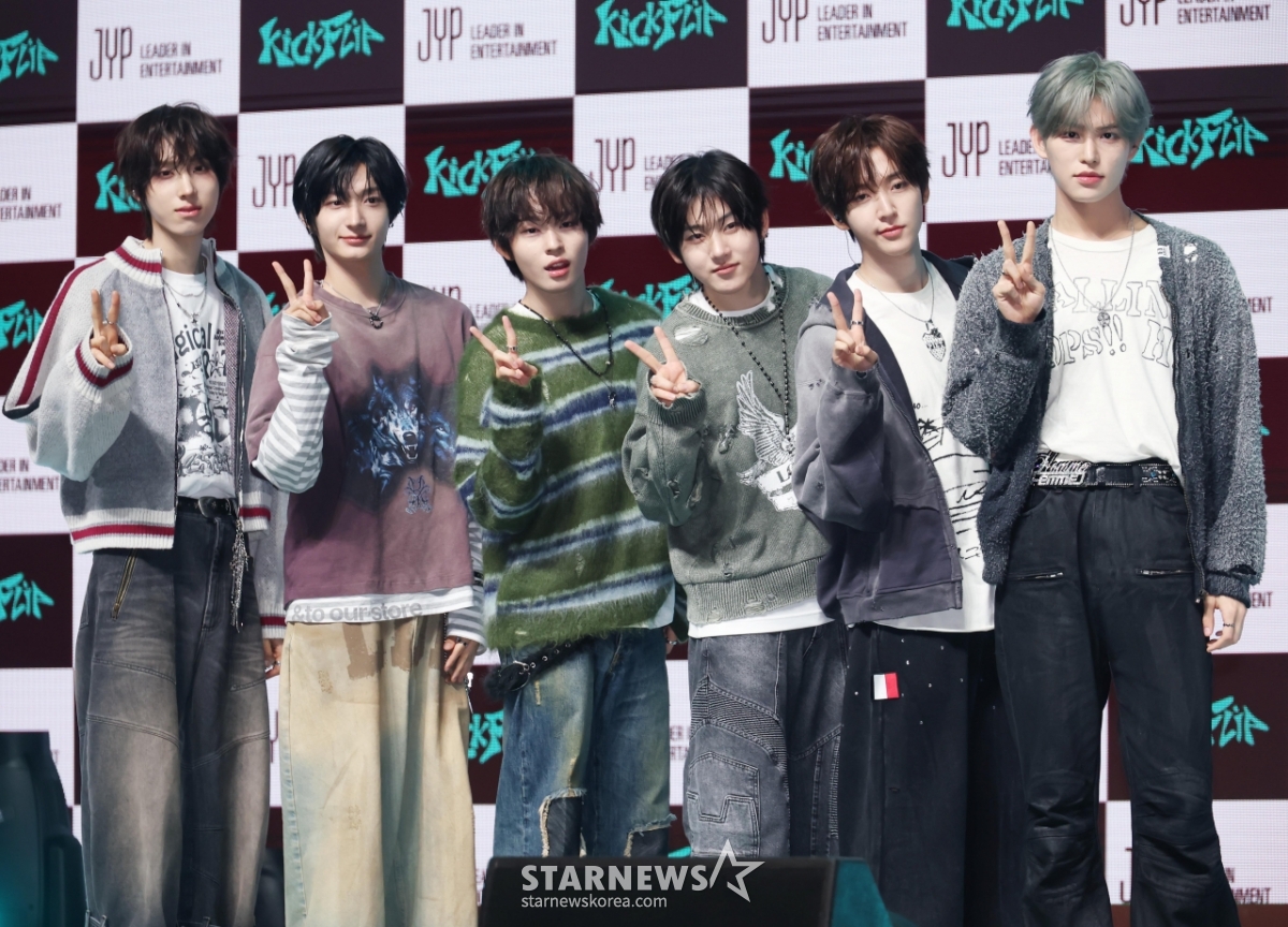 Chiều 6/5, nhóm nhạc Kickflip đang tạo dáng tại showcase kỷ niệm phát hành mini album vol.4 My First Kick tại Yes24 Live Hall, quận Gwangjin, Seoul.