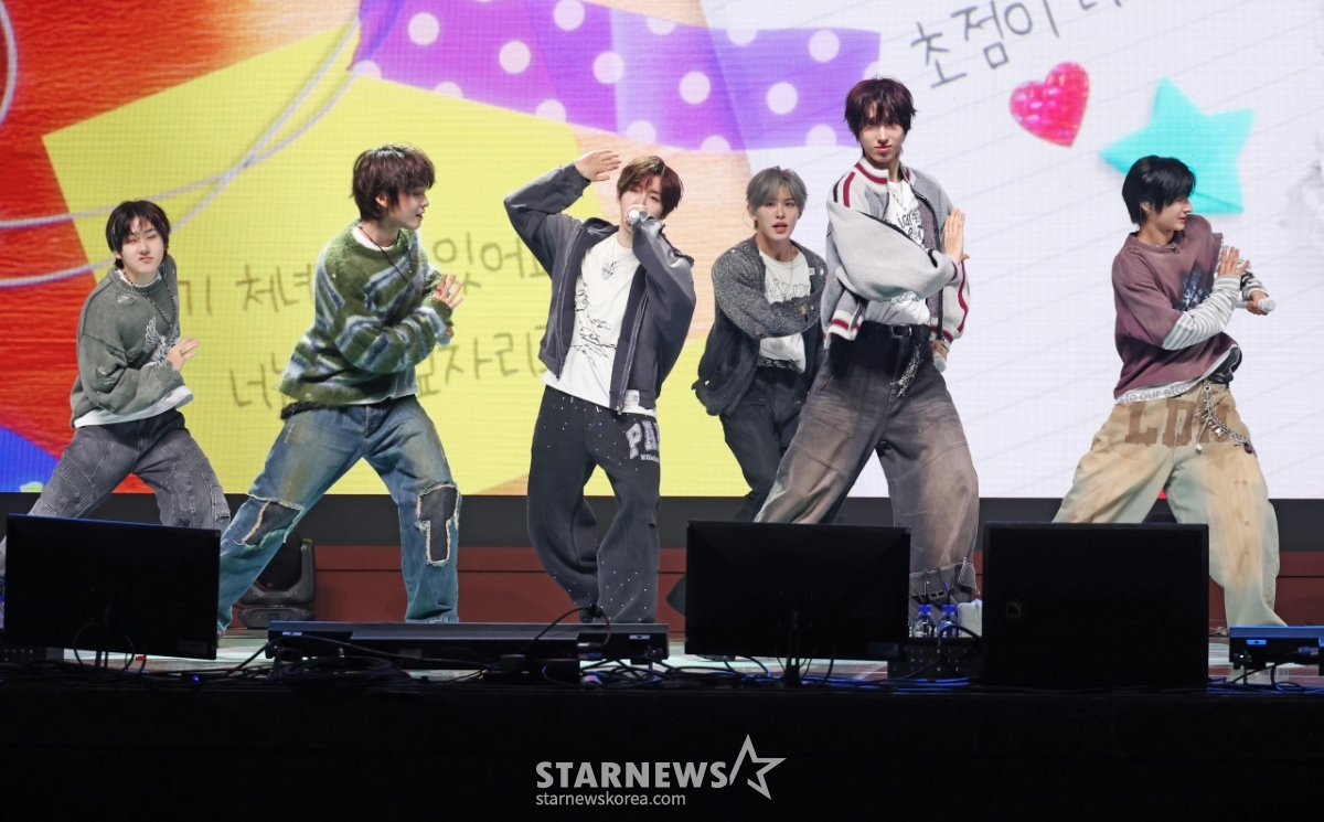 Chiều 6/5, nhóm nhạc Kickflip đang trình diễn ca khúc chủ đề tại showcase kỷ niệm phát hành mini album vol.4 My First Kick tại Yes24 Live Hall, quận Gwangjin, Seoul.