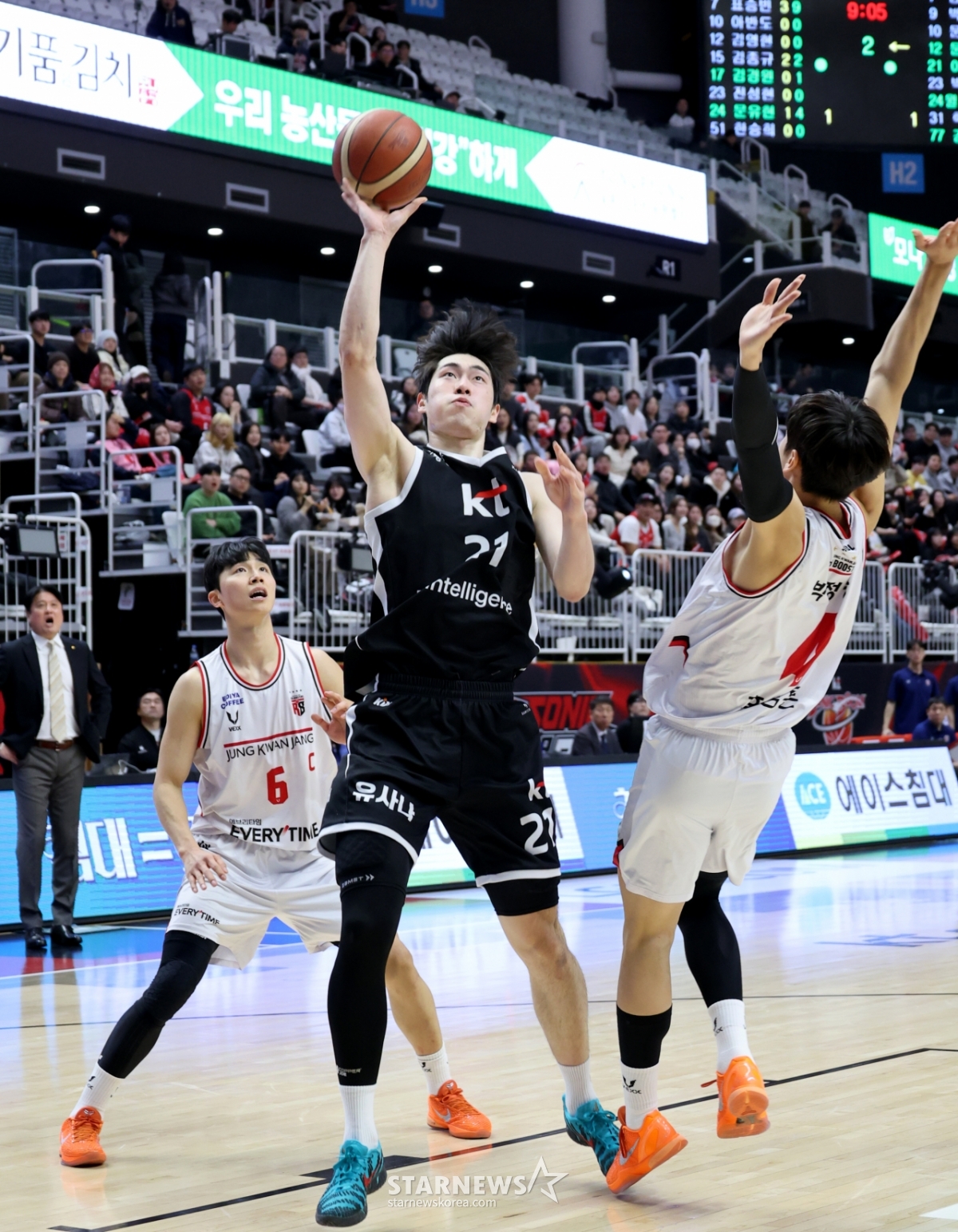 Vào ngày 21, Lee Doo Won của KT đang thực hiện một cú sút một mình trong trận đấu với KT bóng rổ chuyên nghiệp 2025-2026 được tổ chức tại Suwon KT Sonic Boom Arena.202601.21.