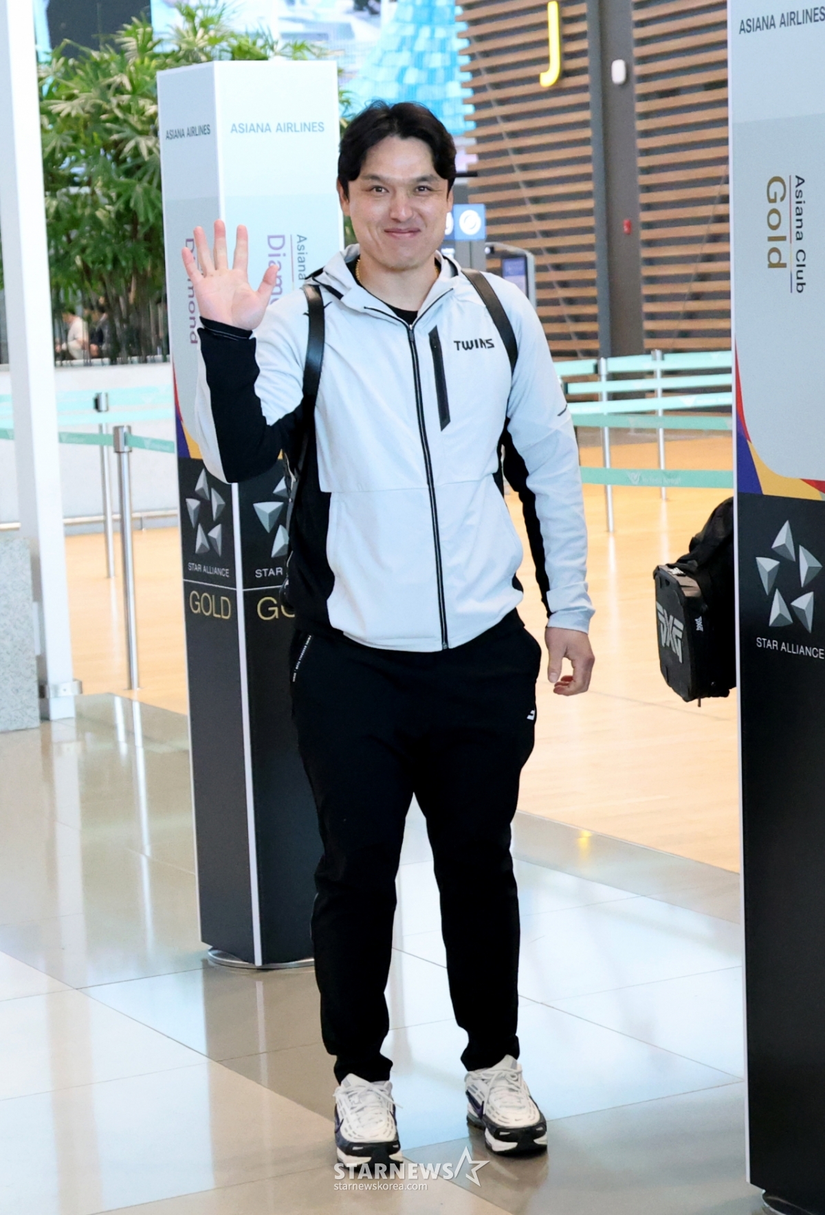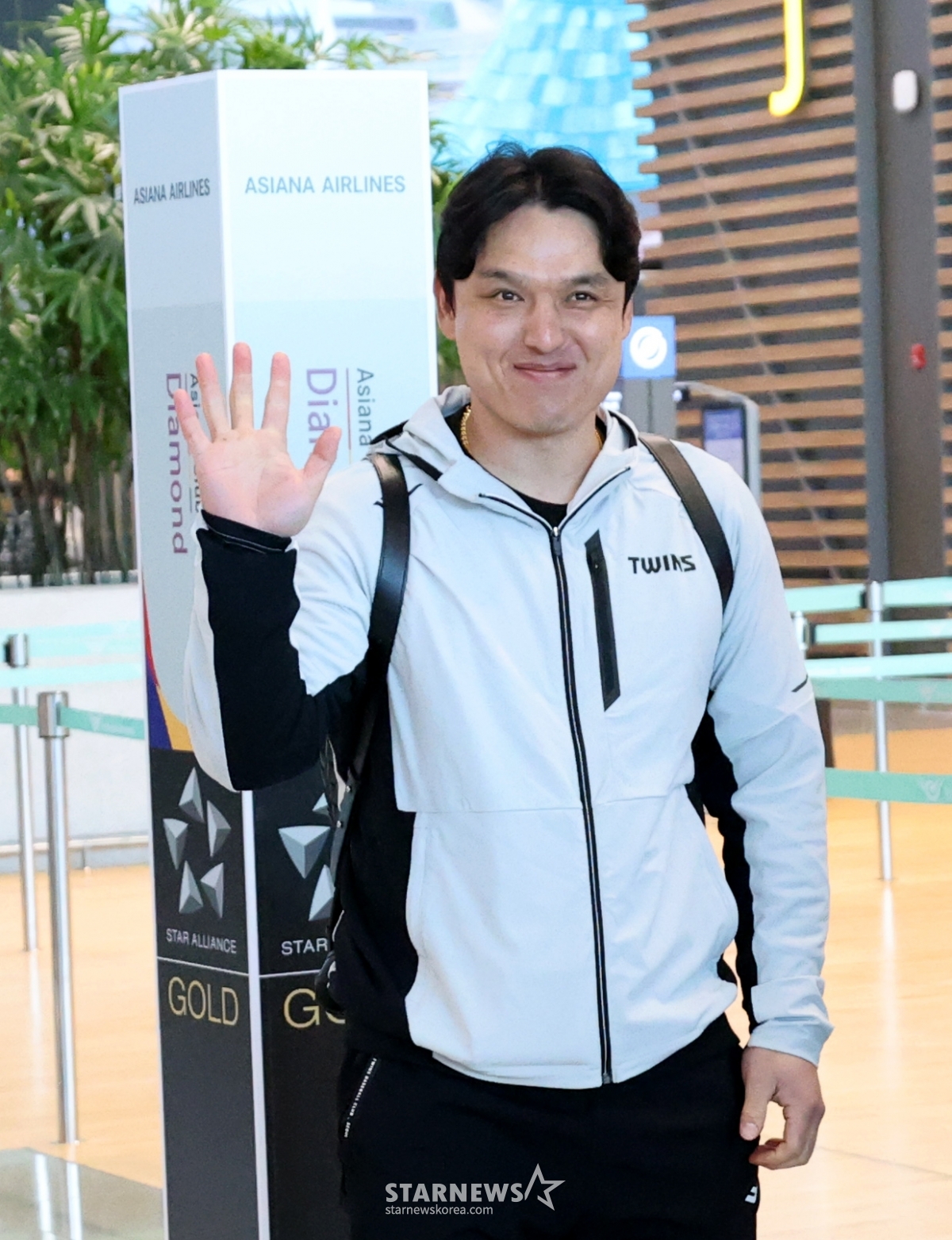 Cầu thủ bắt bóng của LG Park Dong Won đang chào hỏi thông qua sân bay quốc tế Incheon vào ngày 22 sau khi xuất cảnh đến Mỹ - địa điểm huấn luyện của LG Twins. 202601.22.