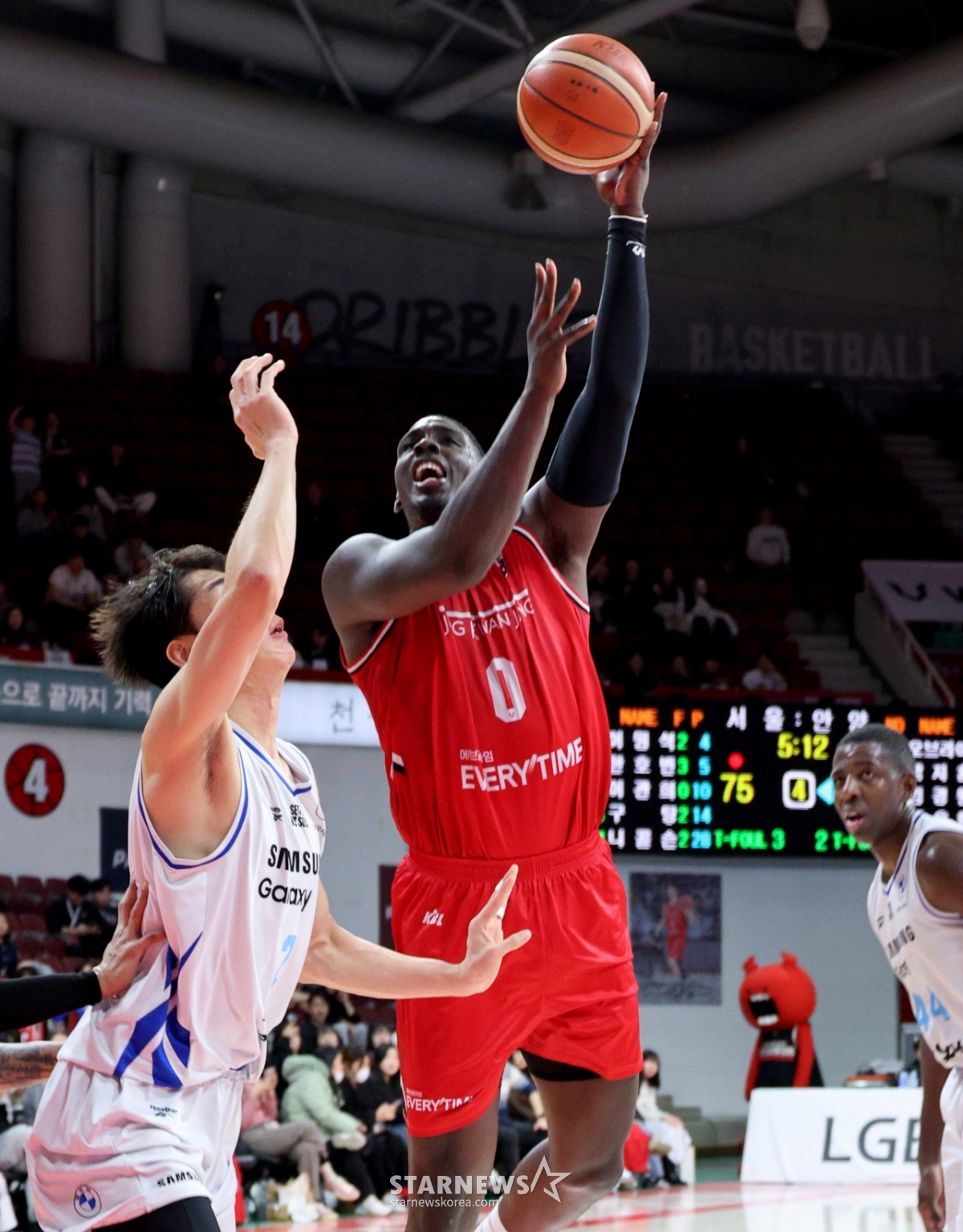 Giám đốc điều hành Jung O'Brien tại sân vận động Anyang vào ngày 29 và đang cố gắng ghi bàn trong trận đấu giữa đội trưởng đội bóng rổ chuyên nghiệp LG 2025-2026 và đội trưởng đội Samsung. 2026.01.29.