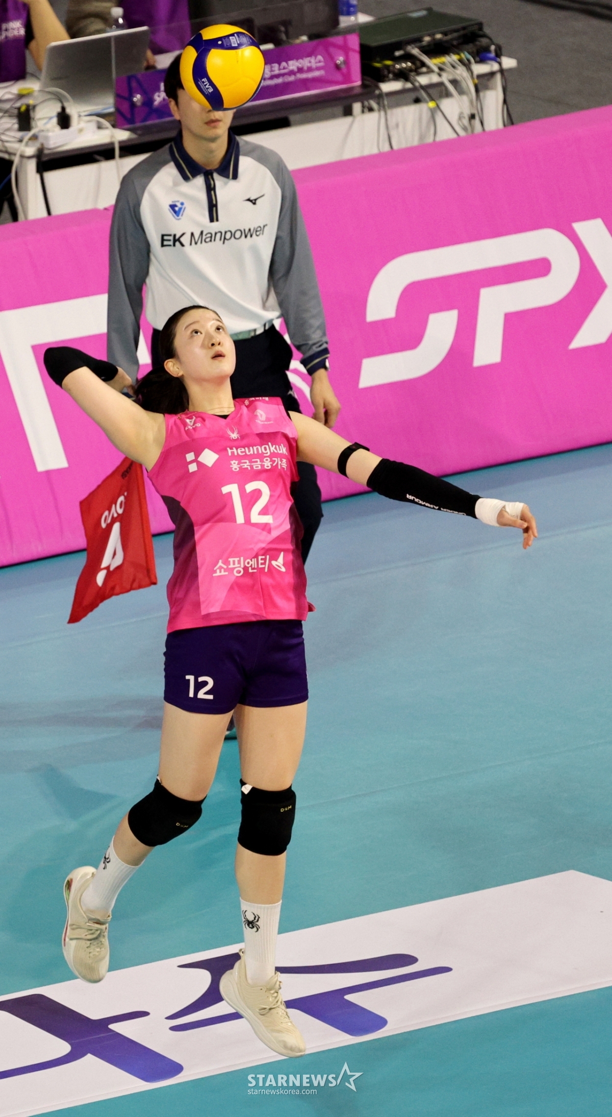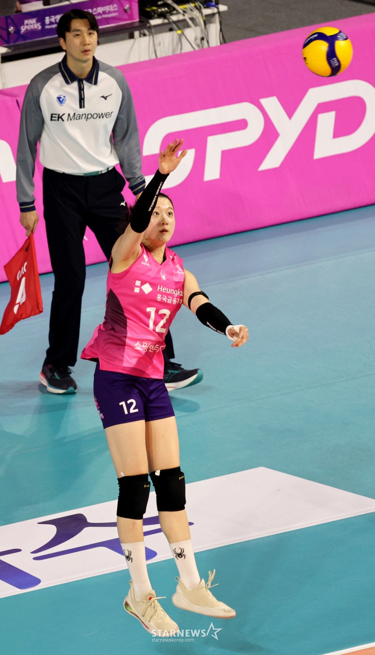 Heungkuk Lee Da Hyun đang cố gắng thực hiện Spike Sub trong trận đấu giữa Heungkuk Life và Pepper Savings Bank tại trận Jin 2026 được tổ chức tại sân vận động Samsan World vào ngày 1. 2026.02.01.
