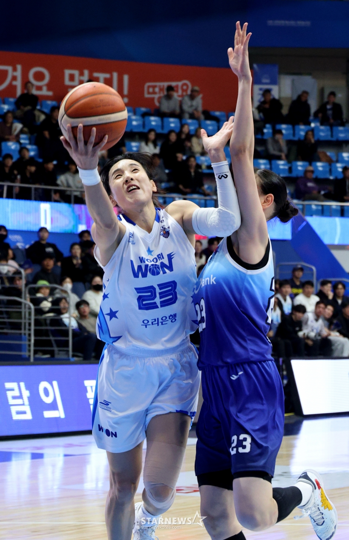 Kim Dan Bi của chúng ta đang cố gắng thực hiện một cú Layup sau khi đánh bại Hong Yoo Soon trong trận đấu giữa Ngân hàng Shinhan 2025-2026WKBL và Ngân hàng Woori được tổ chức tại Nhà thi đấu Dowon Incheon vào ngày 11. 2026.02.11.