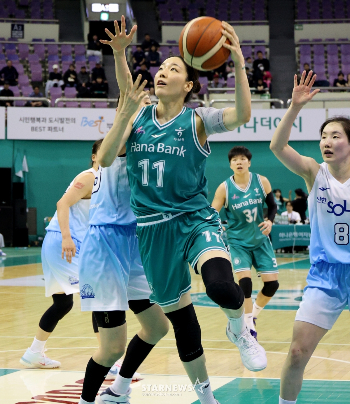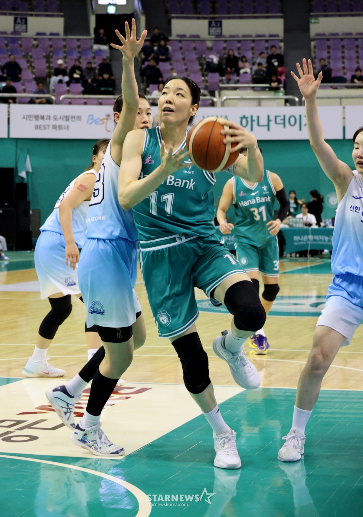 Hana Yang In-young đang cố gắng thực hiện một cú Layup trong trận đấu giữa Ngân hàng Hana Bank và Ngân hàng Shinhan với BNK Financial 2025-2026 được tổ chức tại Nhà thi đấu trong nhà Bucheon vào ngày 20. 2026.02.20.