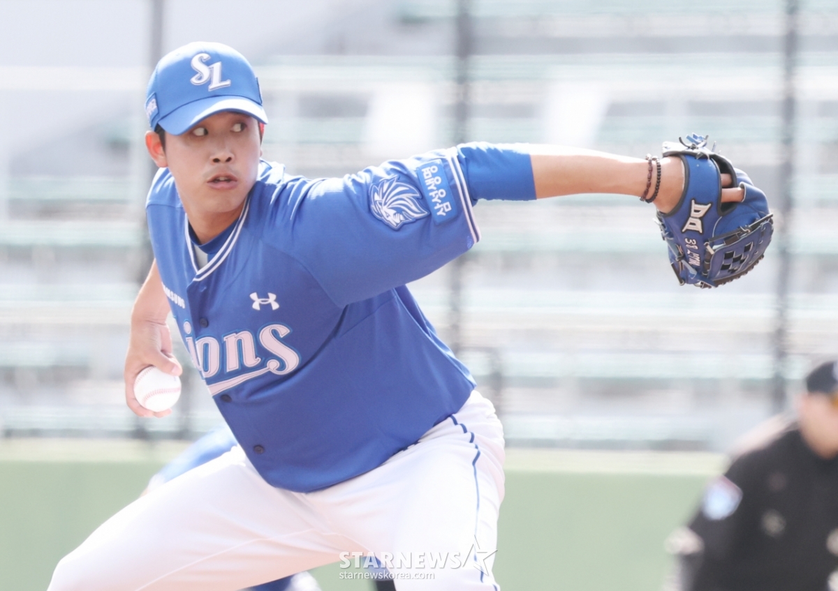 Lim Ki-young của Samsung đang ném bóng ngược lại.