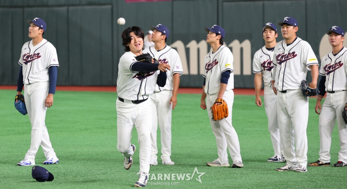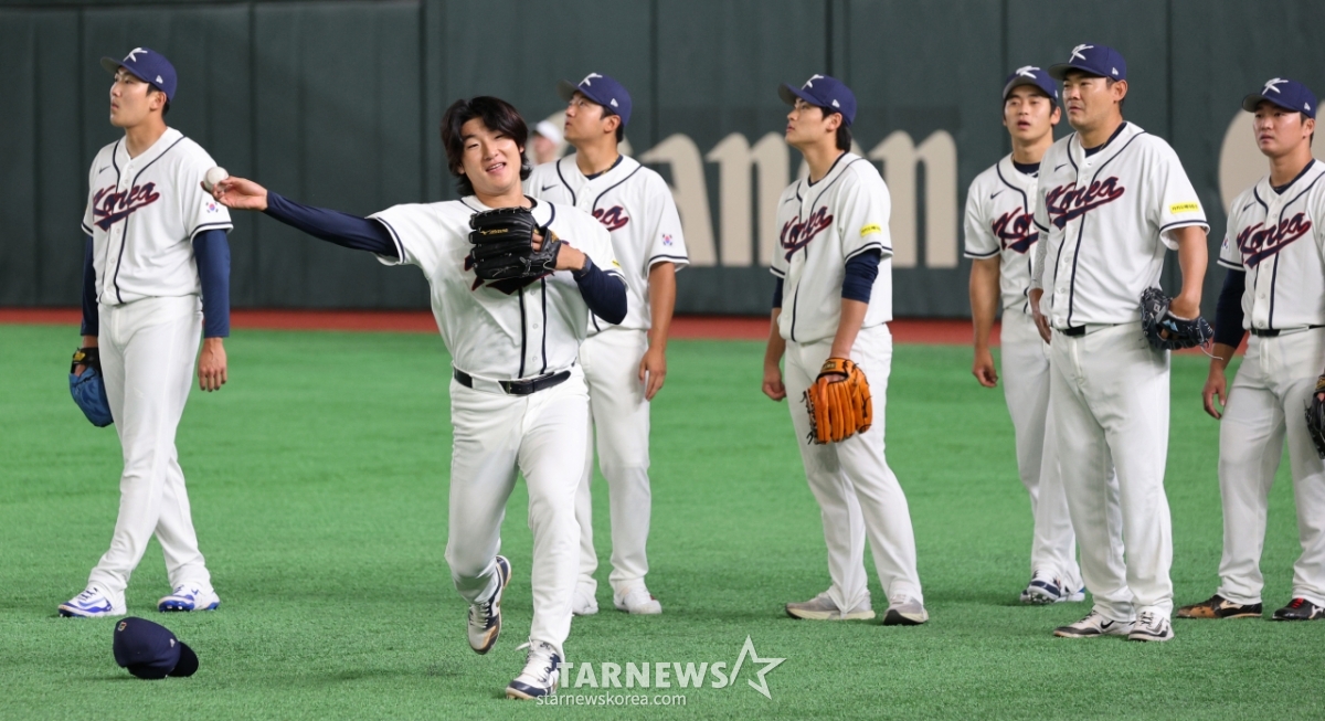 Cầu thủ ném bóng của đội tuyển bóng chày quốc gia Kwak Bin đang tập luyện phòng ngự trong buổi huấn luyện một ngày trước khi khai mạc vòng đấu Tokyo 2026WBC được tổ chức tại Tokyo Dome vào ngày 4. 2026.03.04.