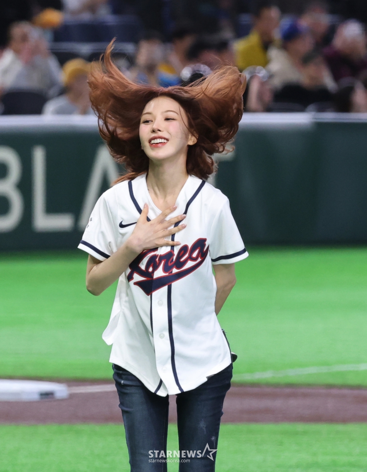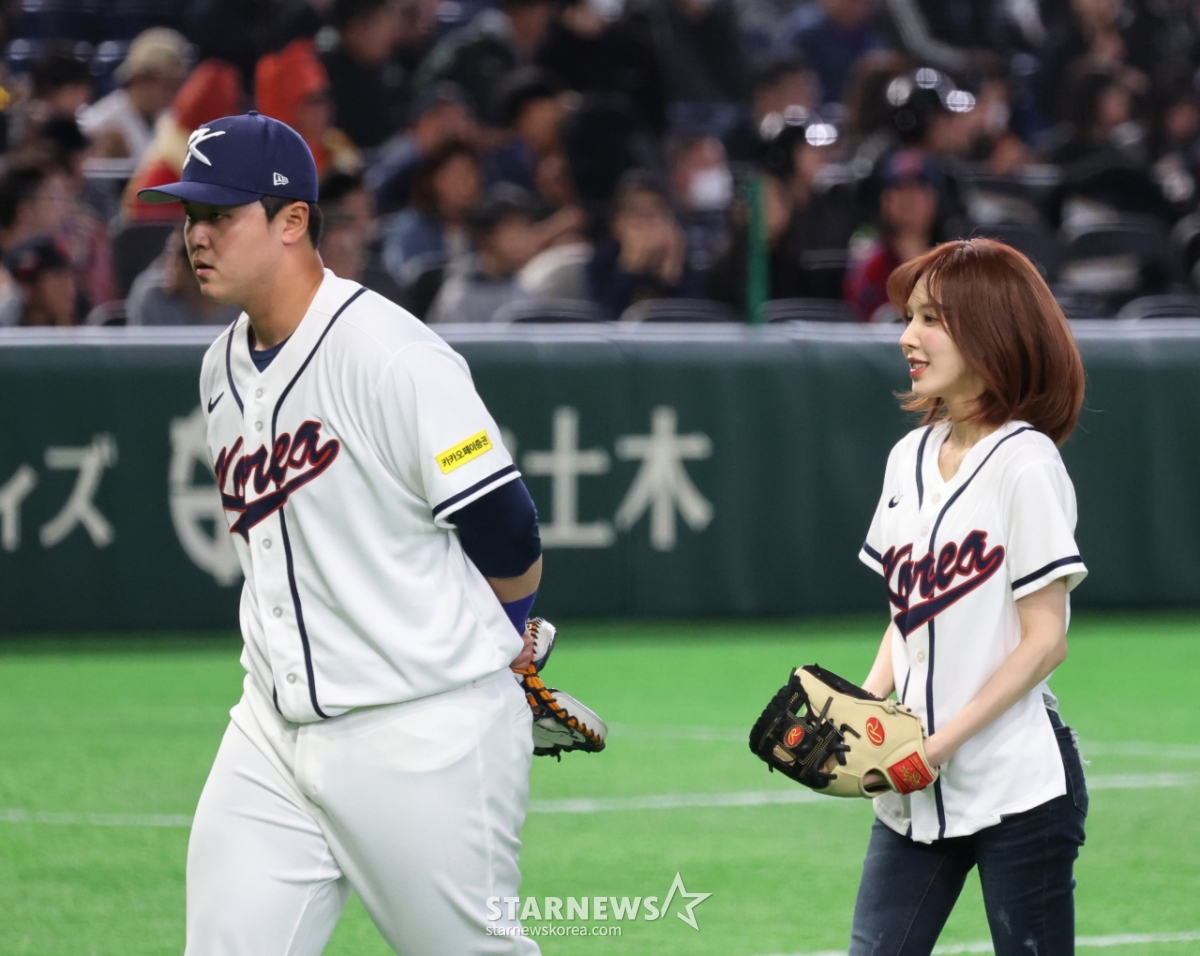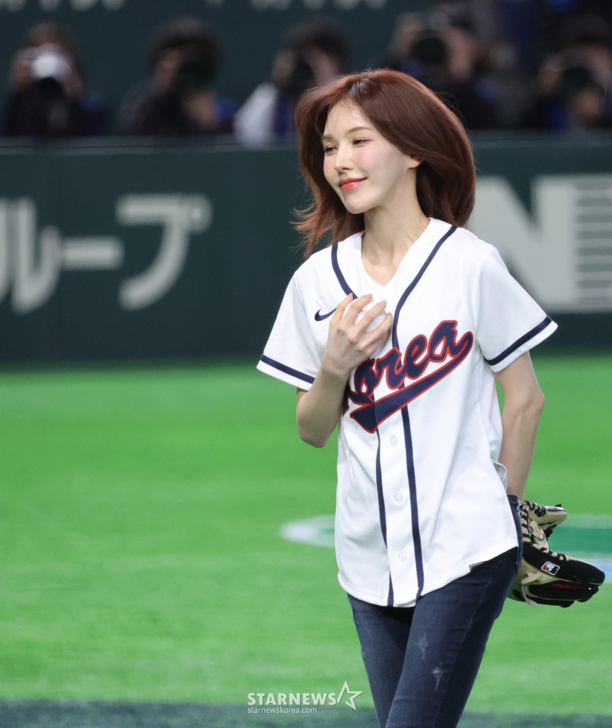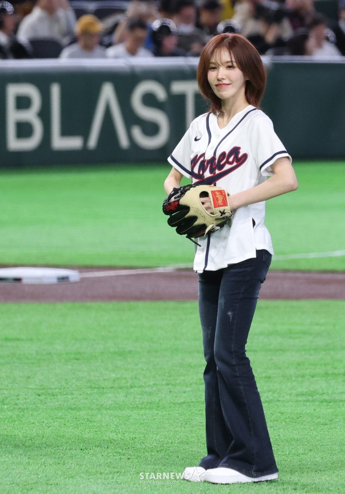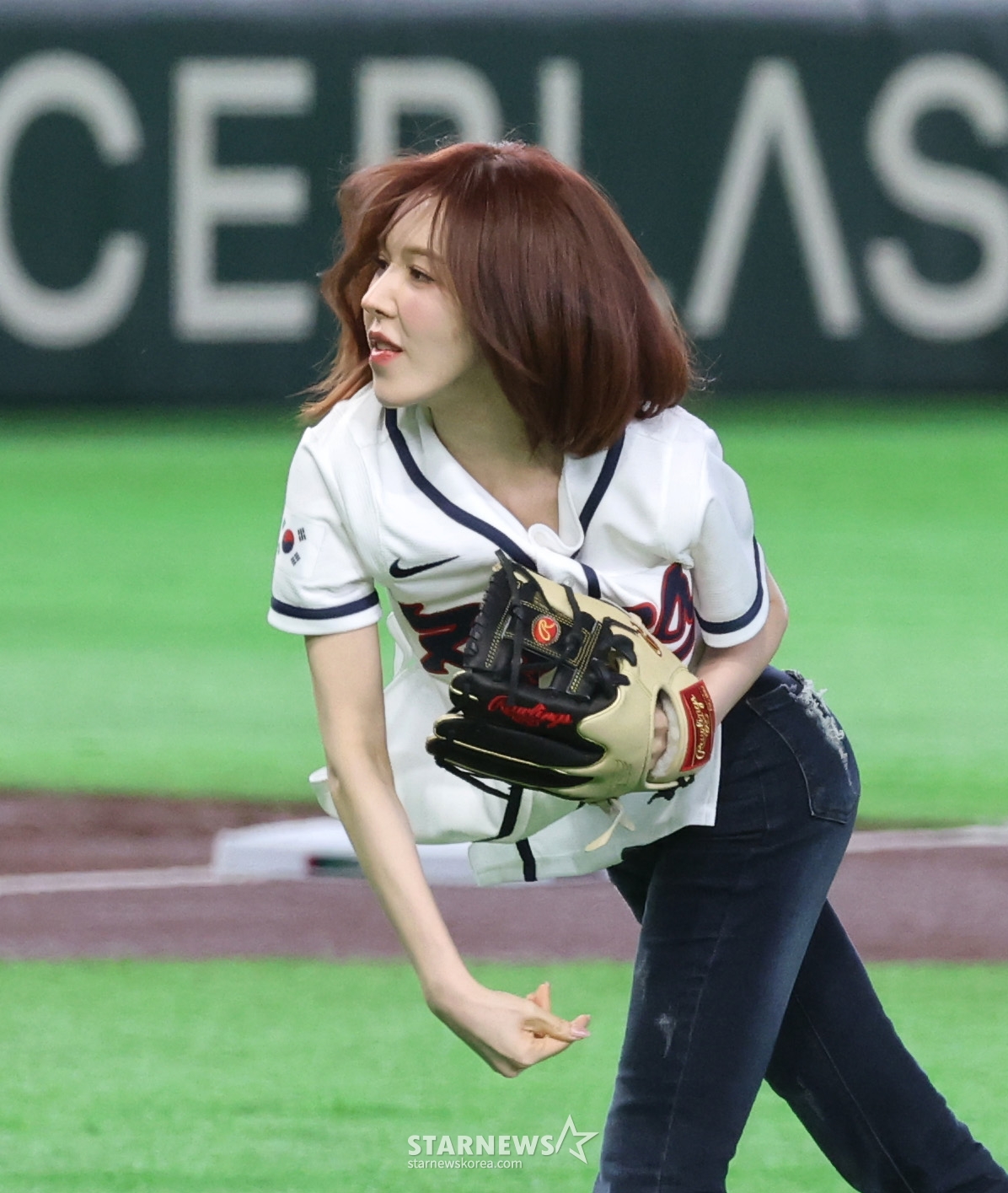 Wendy (Red Velvet) đang ném bóng khai mạc trận đấu thứ hai của TokyoPOOL 2026WBC được tổ chức tại Tokyo Dome vào ngày 5 tại Hàn Quốc và Cộng hòa Séc. 2026.03.05.