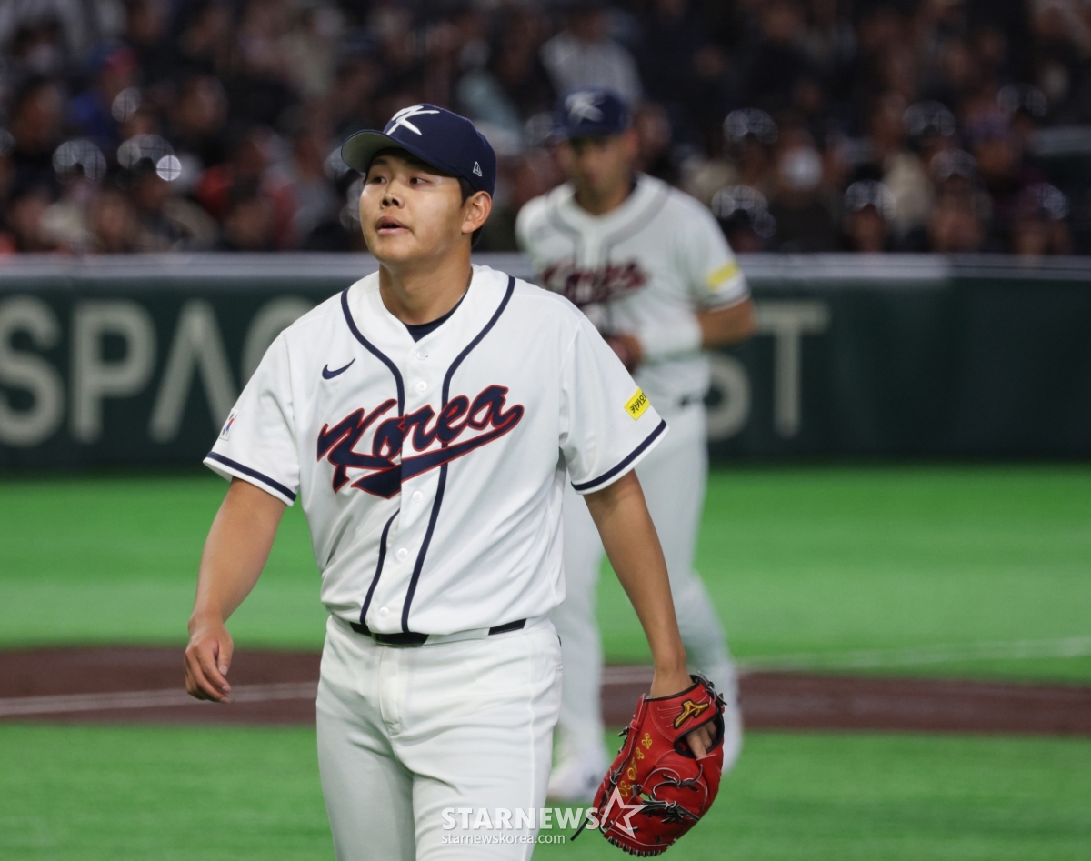Cầu thủ ném bóng đầu tiên của đội tuyển bóng chày quốc gia, cầu thủ ném bóng đầu tiên, So Jung Joon, đang hướng đến dugout sau khi kết thúc trận đấu thứ ba giữa Hàn Quốc và Cộng hòa Séc trong trận khai mạc TokyoPOOL 2026 được tổ chức tại Tokyo Dome vào ngày 5. 2026.03.05.