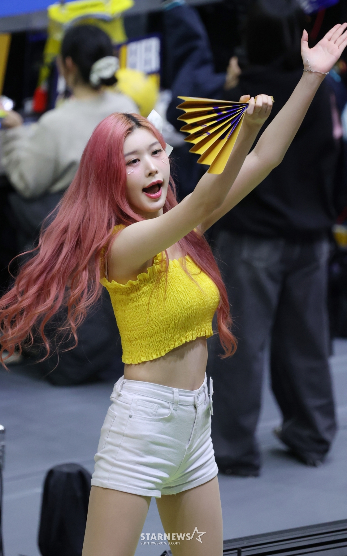 Cheerleader Shin Hye Ryeong của Hyundai E&C đang cổ vũ một cách sảng khoái.