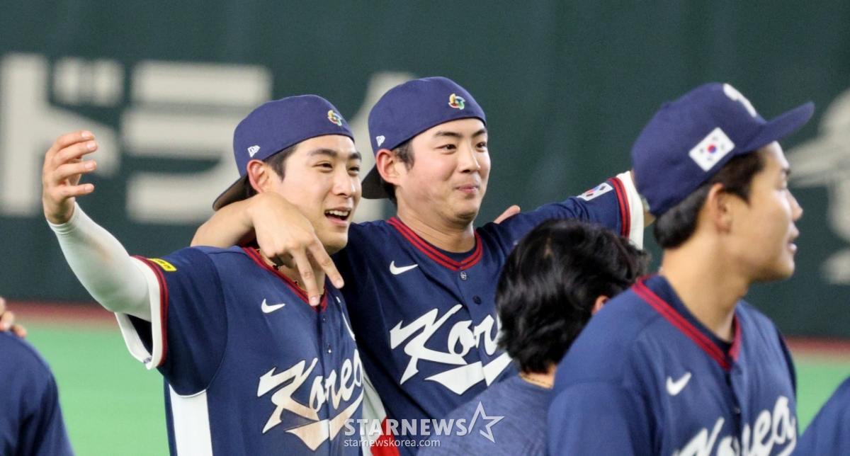 Đội tuyển bóng chày quốc gia Hàn Quốc đã giành chiến thắng 7-2 trong trận đấu giữa Hàn Quốc và Úc 2026 WBC TokyoPOOL được tổ chức tại Tokyo Dome vào ngày 9 và xác nhận sẽ đến Miami. Đó là một trận đấu dai dẳng duy trì 5 điểm và 2 điểm trong gang tấc. Goo Ja Wook và Lee Jung Hoo đang chụp ảnh tự sướng. 026.03.08.