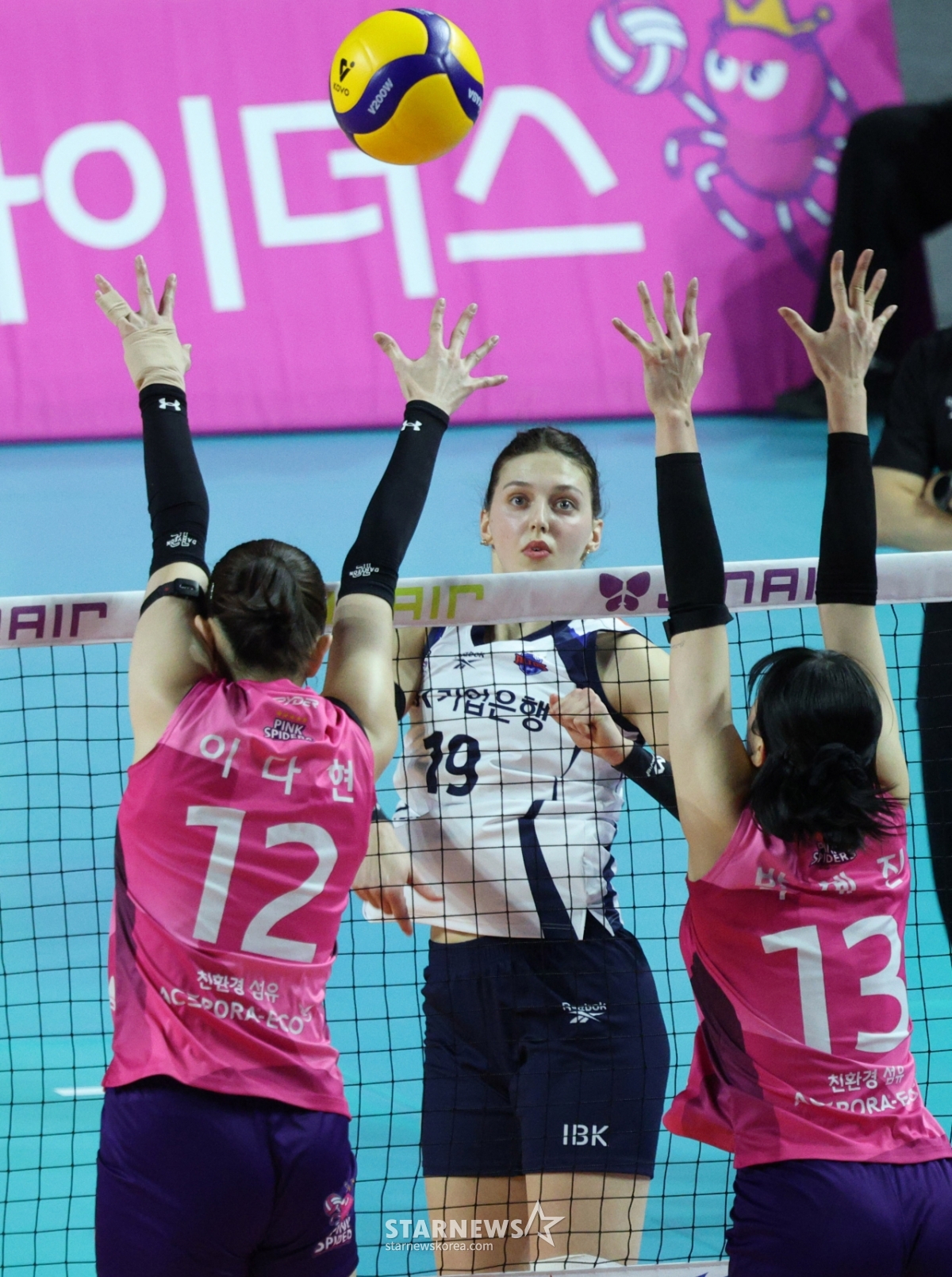 Ngân hàng doanh nghiệp Hàn Quốc Victoria (IBK) đang đánh liên tục giữa Lee Da Hyun và Park Hye Jin của Heungkuk Life.
