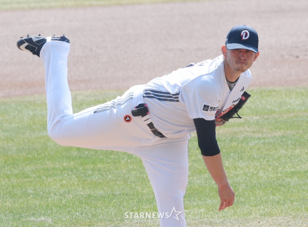 Cầu thủ ném bóng đầu tiên của Doosan, Flexsen, đang ném bóng ngược lại.