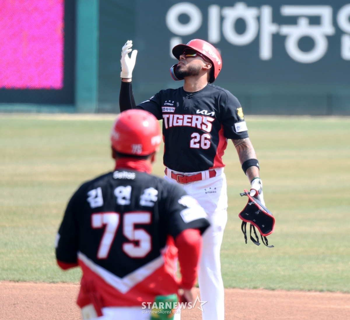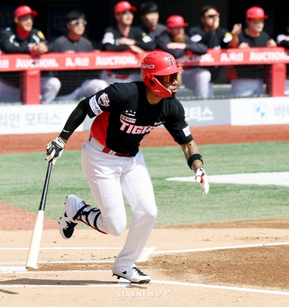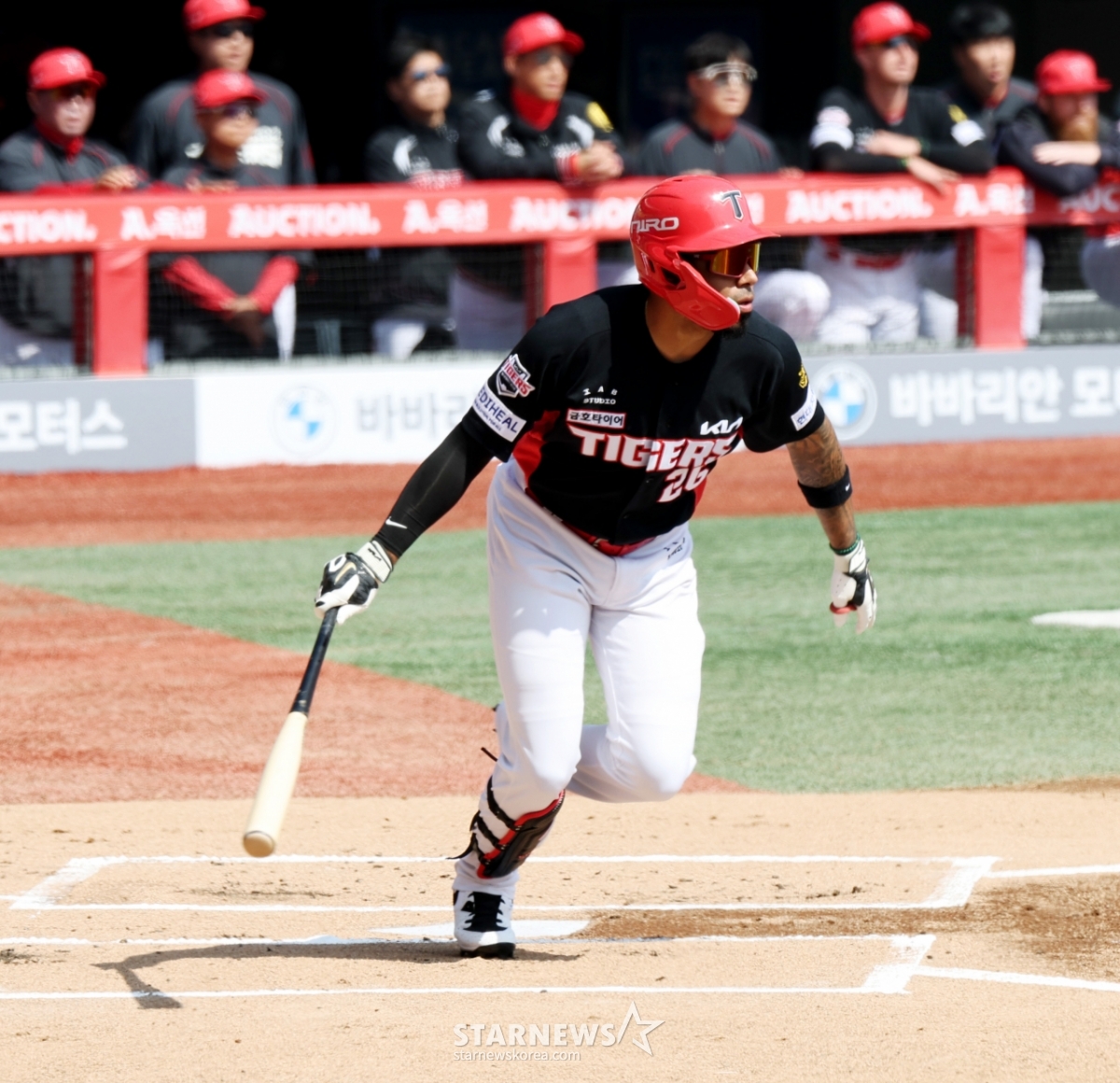 Castro, cầu thủ đánh bóng thứ hai của KIA, đang xuất phát từ chốt gôn 1 đến chốt gôn 2 trong hiệp 1 của trận khai mạc giải bóng chày chuyên nghiệp năm 2026 SSGlanders Field ở Incheon vào ngày 28. 2026.03.28.