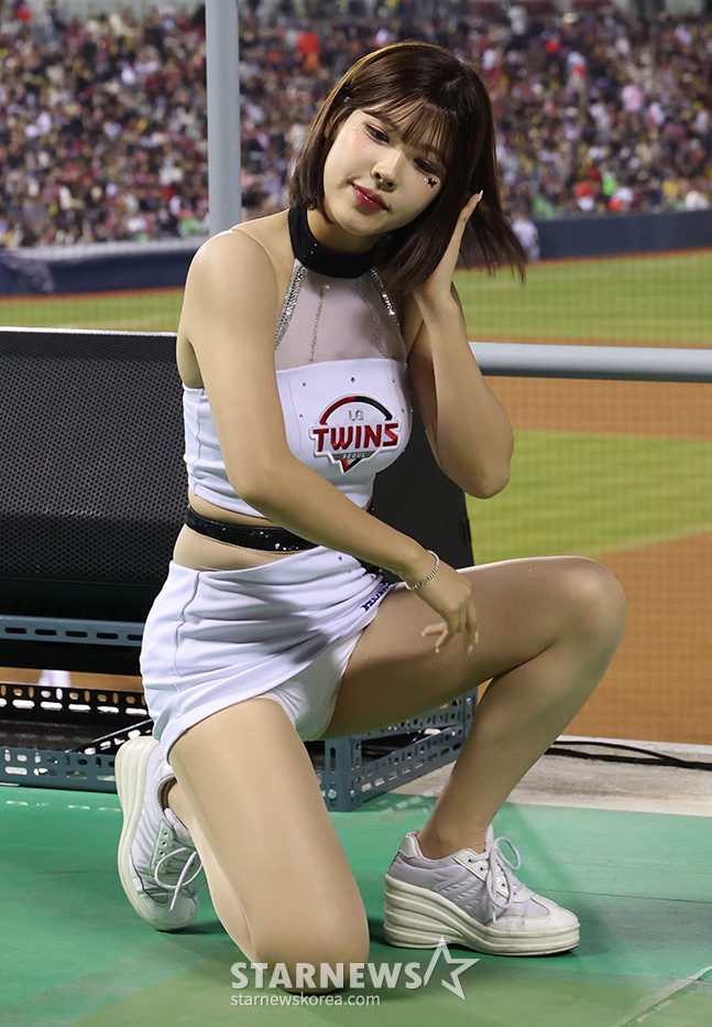 Đội cổ vũ của LG Park Ye Eun đang cổ vũ một cách sảng khoái.