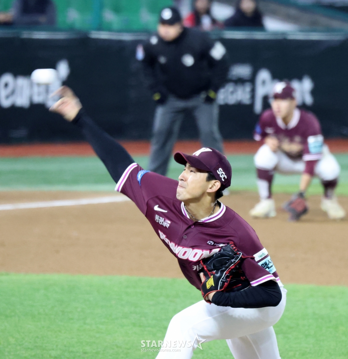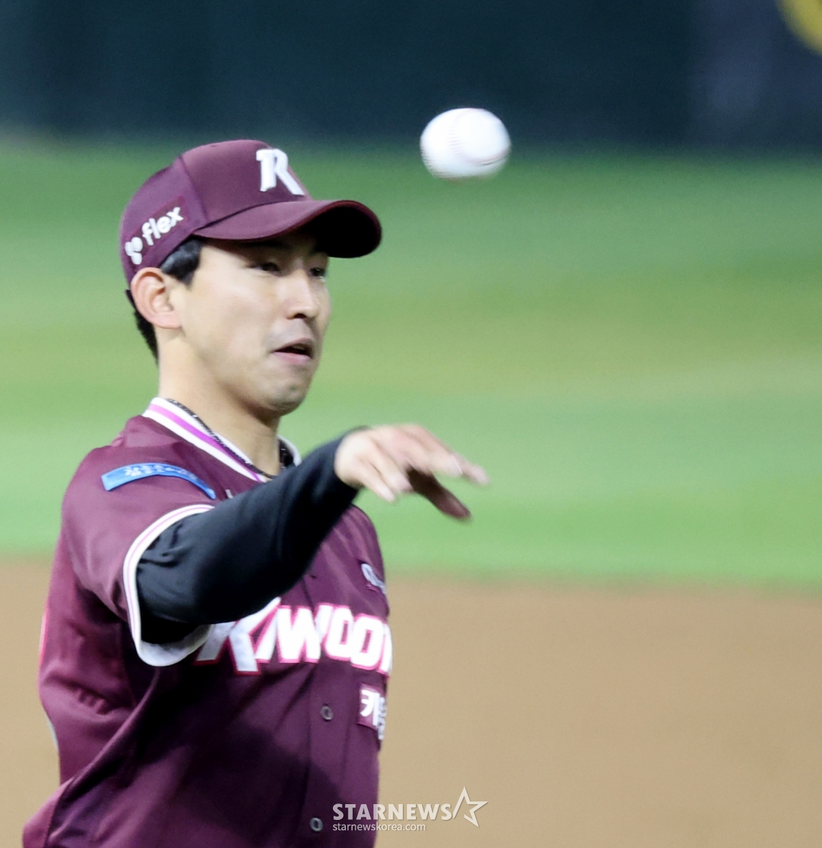 Vào ngày 1, Kium Woo Wan Bullpen Yuto đã bắt được cú đánh bóng chày chuyên nghiệp SSGlanders của đội bóng chày chuyên nghiệp năm 2026 và đội Kium Heroes tại sân vận động SSGlanders ở Incheon và ném về gôn 1. 2026.04.01.
