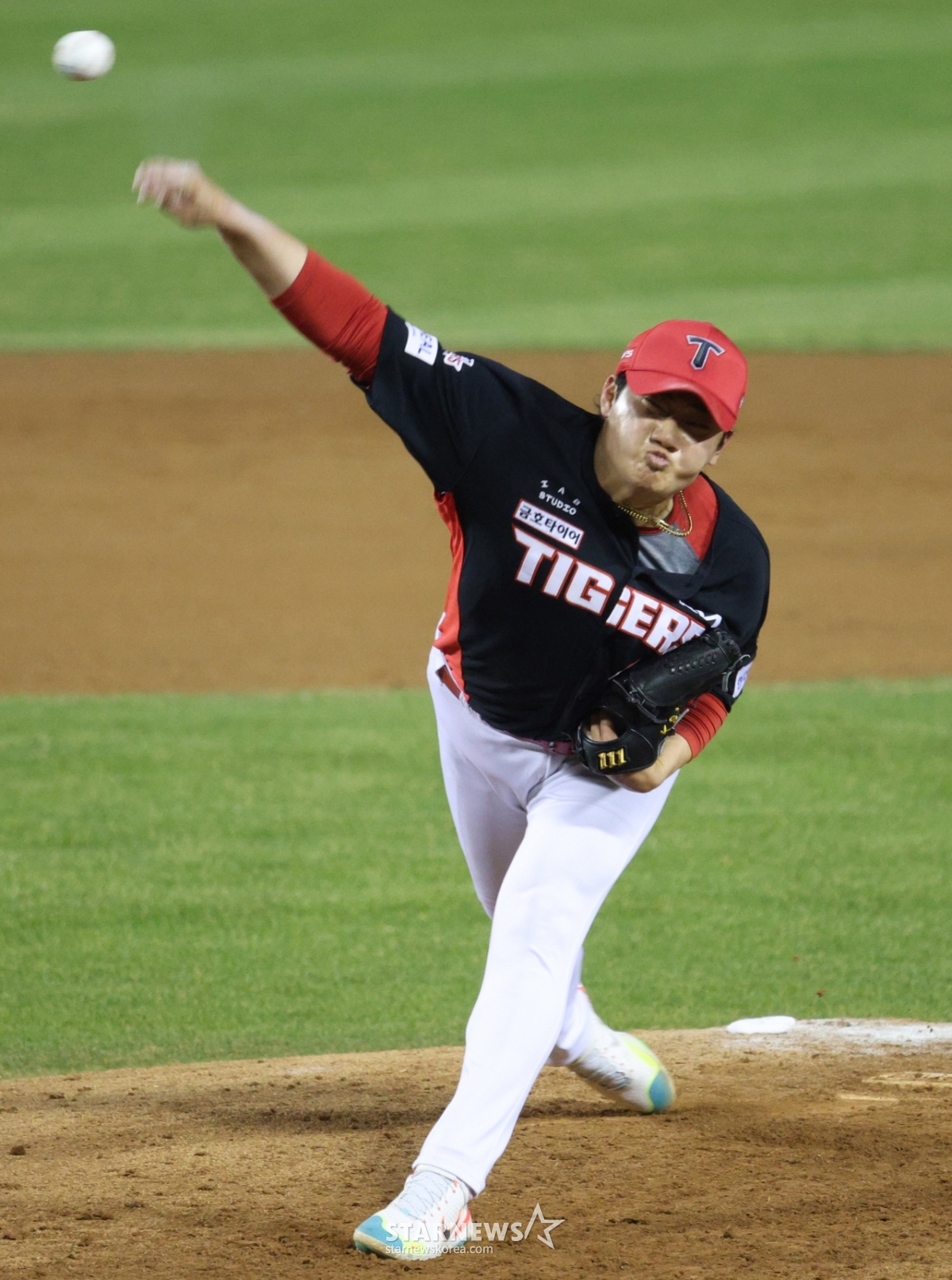 Kim Si Hoon của KIA đang ném bóng ngược lại.