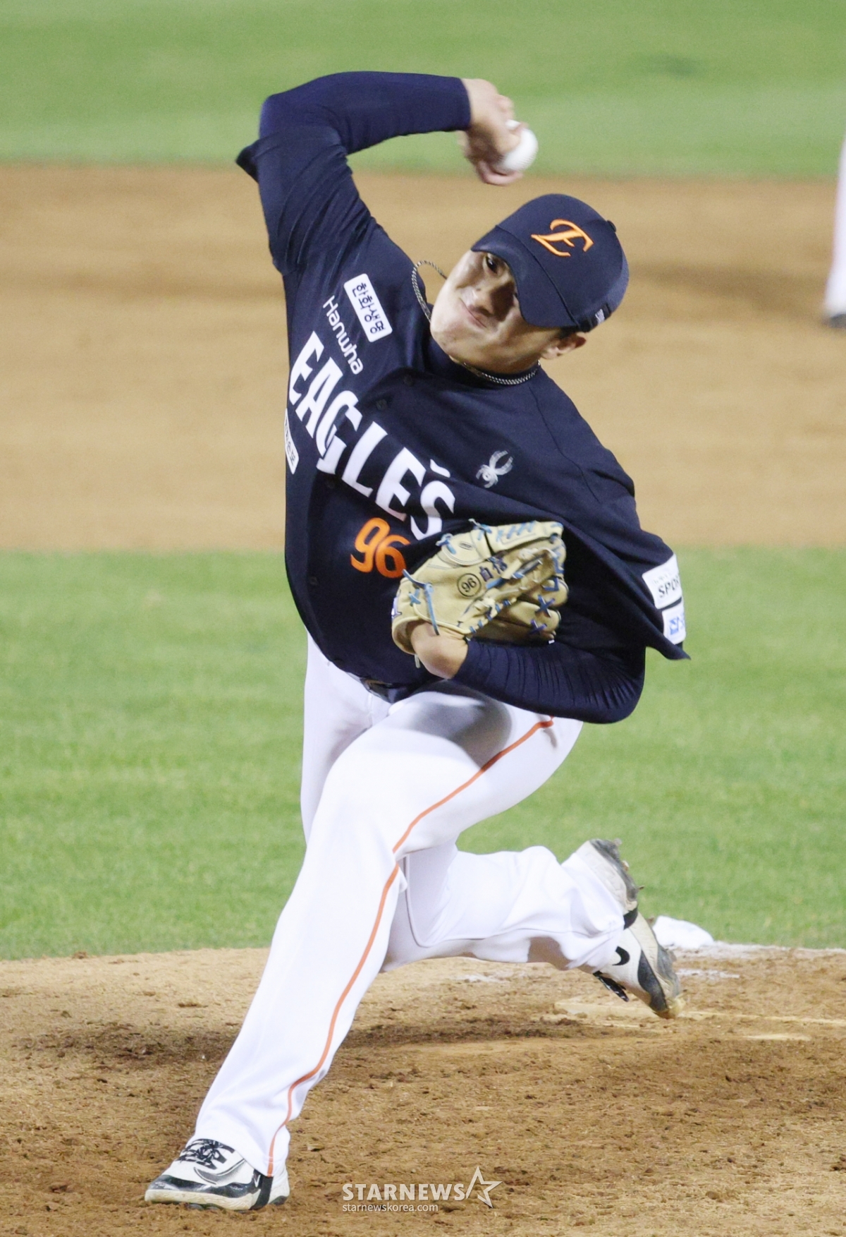 Hanwha Park Joon Young đang ném bóng ngược.