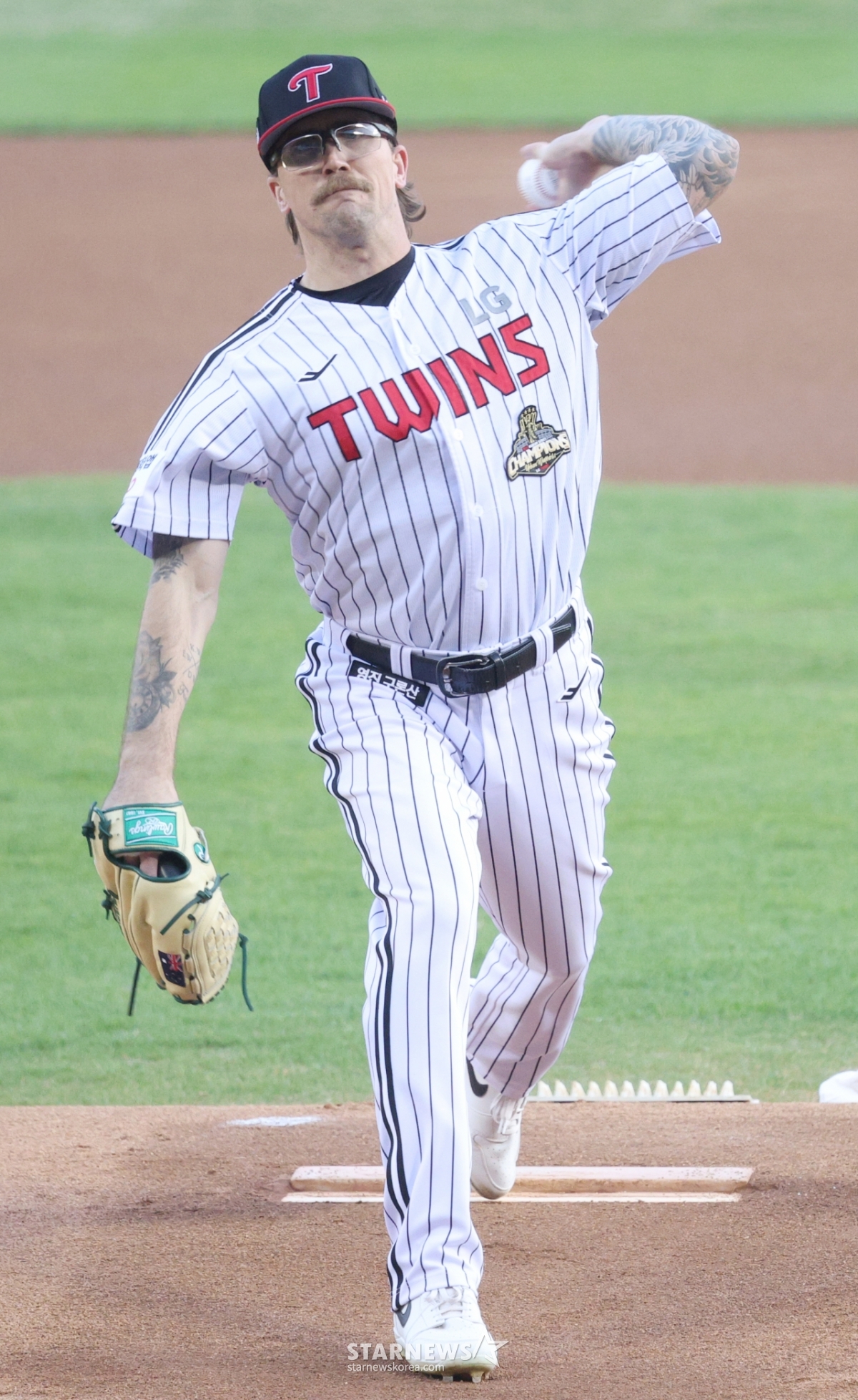 Tuyển thủ bắt đầu từ LG Wells đang ném bóng ngược lại.