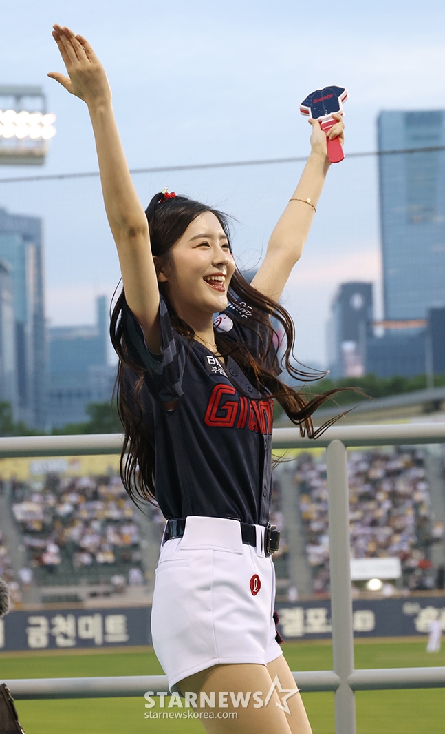 Đội cổ vũ Lotte Lee Yoon Seo đang cổ vũ một cách sảng khoái.