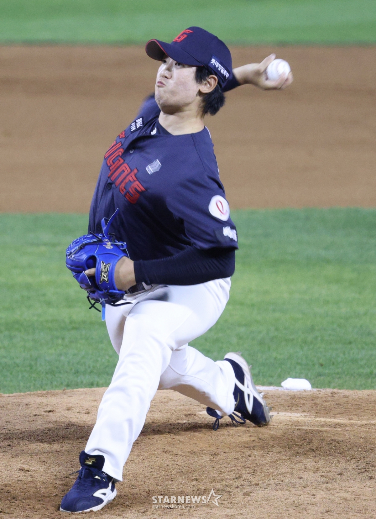 Lotte Choi Lee Joon đang ném bóng ngược.