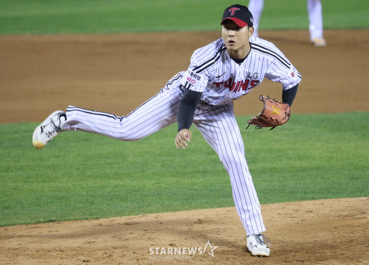 LG Woo Kang Hoon đang ném bóng ngược.